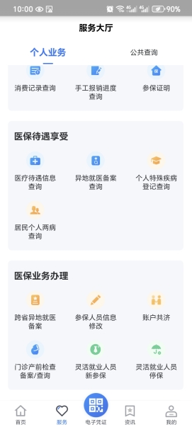 3.点击下方“服务”,下拉找到“灵活就业人员医保办理”。