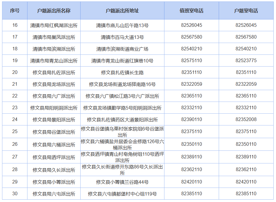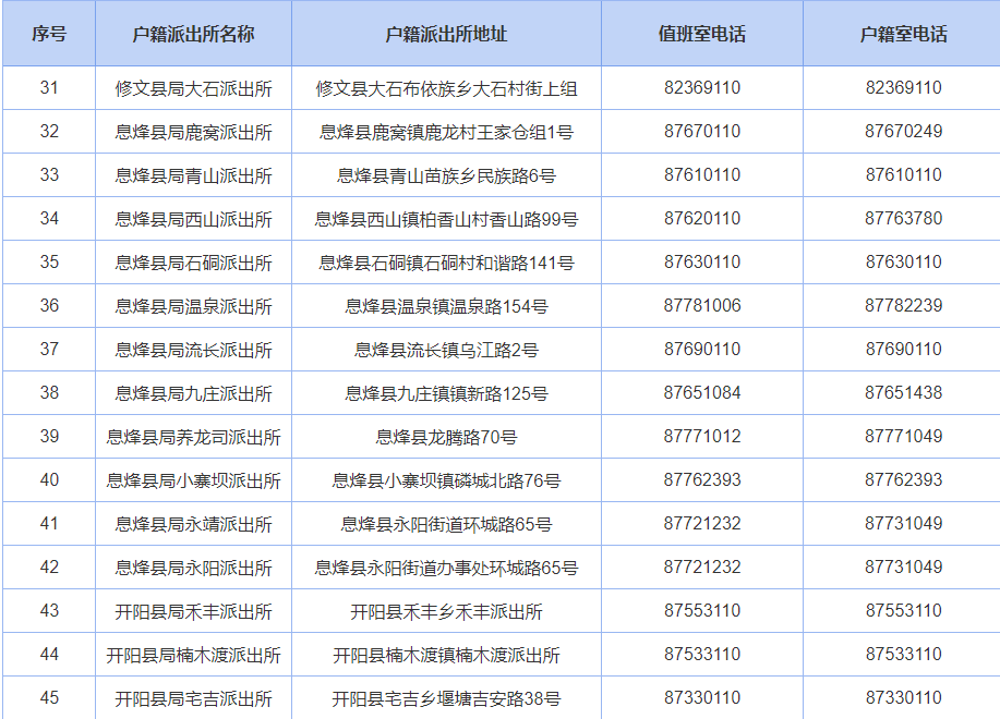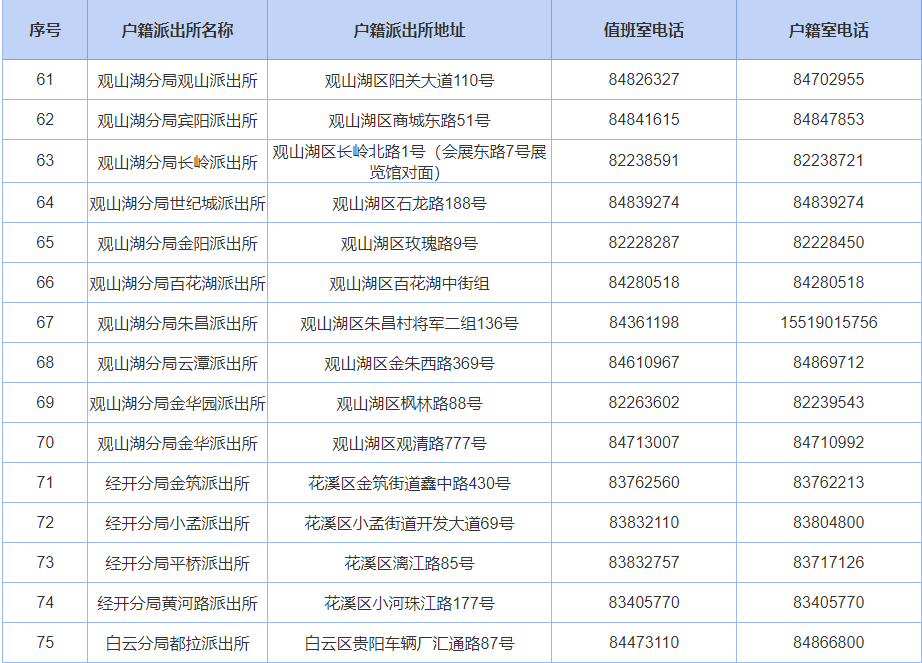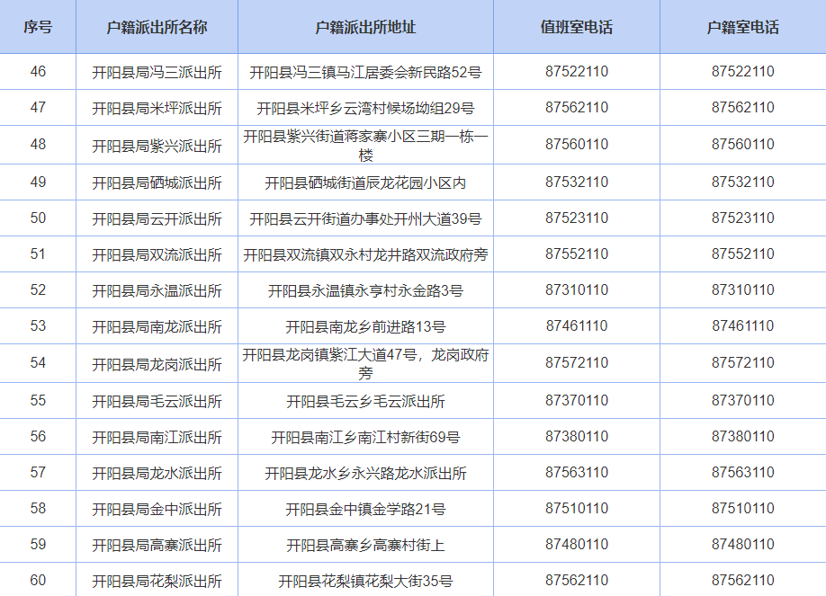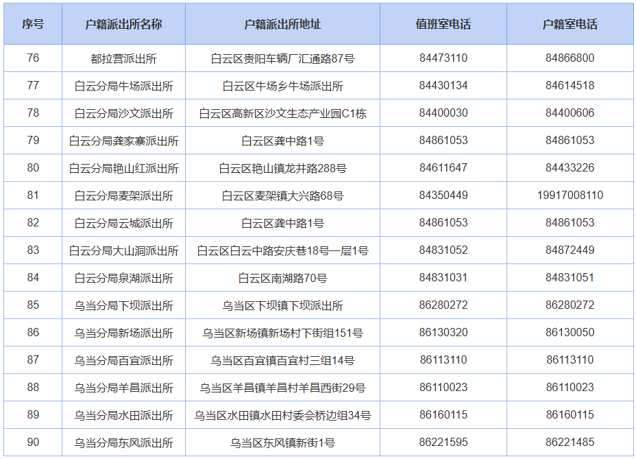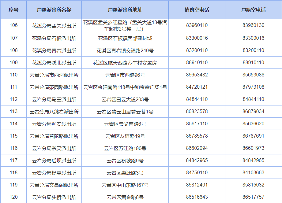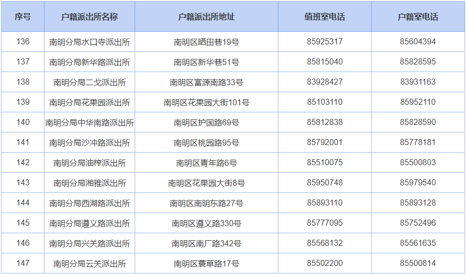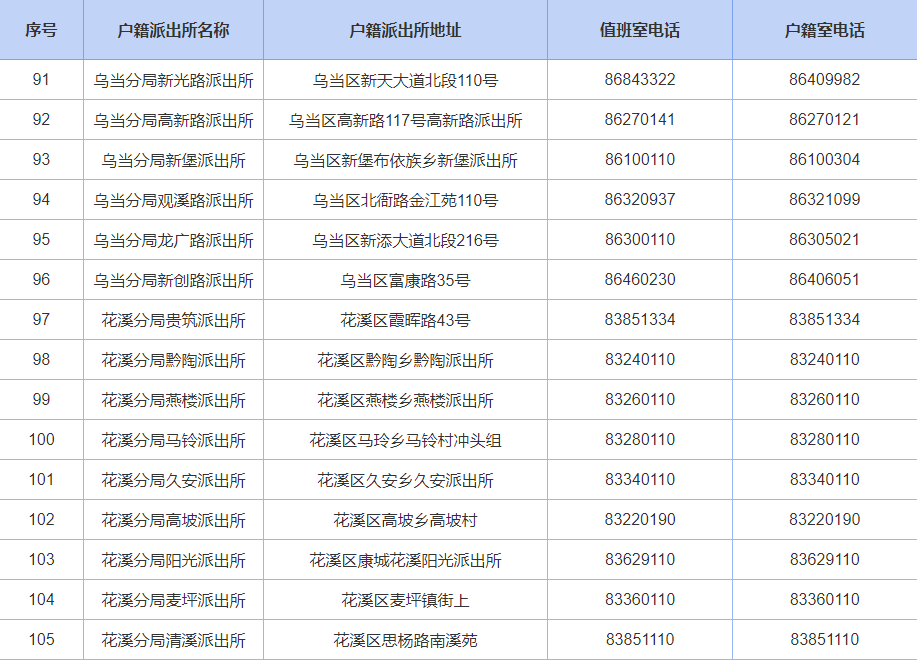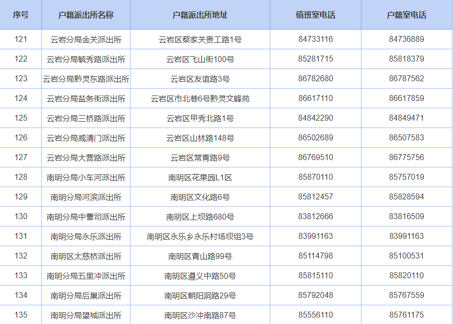 贵阳公安户籍派出所联系电话