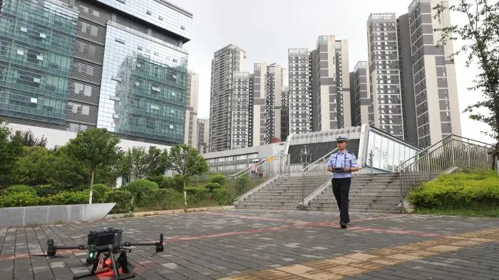 交警无人机将精准锁定地铁站、公交站、医院、学校等客流、车流密集区域,对骑行不戴头盔、车辆违停等行为进行实时喊话纠错;同时出动地面警力,迅速锁定取证处置目标,形成“空中震慑、地面联动”的立体执法闭环。刘珈瑞介绍道:“我们的无人机投放在会展路,有一个固定机槽,主要进行路面巡查。刚刚所介绍的这个喊话无人机,主要是用于兴筑路,以及其他地铁站周边,还有公交车站的一些违停情况进行巡查。”