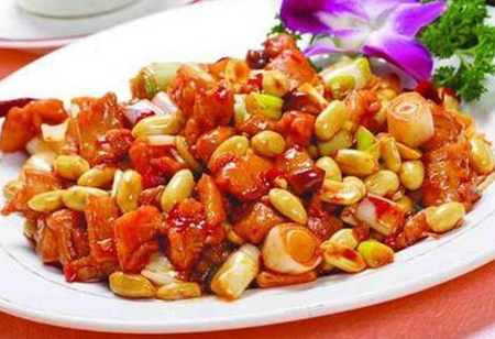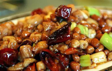 宫保鸡风味独特,历史悠久,为中外人士赞誉的一种菜肴。这个菜具有色泽红亮,肉质鲜嫩、辣香味浓,辣而不猛,油而不腻等特点。佐酒下饭,妇幼皆宜。贵州各家饭店几乎均有此菜。