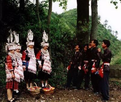 三桥村圣泉“三月三”民族艺术节:三桥村是位于我市云岩区西北出口要道城郊结合部的一个多民族聚居的村寨(有苗族、布依族、黎族、土家族、汉族等八个民族),每年农历“三月初三”村民们自发地聚集到下五里布依村寨圣泉边,以山歌对唱的形式表达丰收后的喜悦,青年男女借此机会,表情达意互叙衷肠,以定终身,因而得名“三月三”。下五里“圣泉”是因地壳运动而形成的天然奇观,有史书记载“泉水自山麓涌出,涨涨缩缩,连绵不断,昼夜不停,又驹百盈,也称漏勺泉,发现于明代永乐年间距今已有600多年的历史。1992年举办了首届民族艺术节至此每年一届,至今共举办了十三届,从布依对歌、山歌对唱、发展到斗鸡、斗鸟、苗族跳场、文艺专场演出与村民自编自演文艺节目等。
