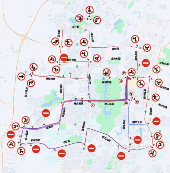 (二)从6月15日5时30分起至赛事结束,会展南路、观山东路(数博大道至八匹马双向)、观山西路(八匹马至云潭南路双向)、云潭南路(观山西路至观清路段、石林东路至观清路段)、观清路(云潭南路至宾阳大道段)、宾阳大道(石林西路至观清路段)、石林西路(云潭南路至宾阳大道段)、石林东路(金阳南路至云潭南路段)、金阳南路(黔灵山路至石林东路段)、黔灵山路(同城大道至金阳南路段)、同城大道(林城东路至黔灵山路段)、阳关大道(数博大道至同城大道双向)、数博大道长岭南路(黔灵山路至观山东路段)、林城东路(金阳北路至石标路双向、同城大道至数博大道段)、数博大道长岭北路(林城东路至枫林路段、林城东路至观山东路段)、枫林路(数博大道至金阳北路段)、金阳北路(枫林路至南湖路段、金朱西路至林城西路段、观山东路至林城东路段)、龙井路(金阳北路至云环路段)、云环路(金湖路至龙井路段)、云潭北路(金朱西路至金湖路段、林城西路至观山西路段)、金朱西路(云谭北路至金阳北路段)、林城西路(云潭北路至宾阳大道双向、金阳北路至云潭北路段、金阳北路至石标路段)、龙滩坝路(林城西路至龙海路双向)将实施临时交通管制,禁止所有车辆通行。