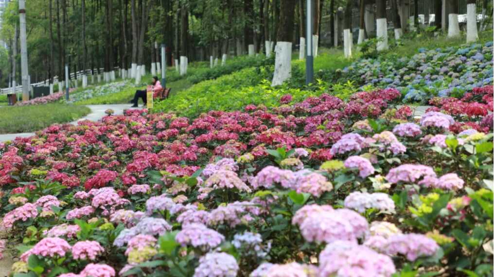 今年5月,拥有着2.6万余株绣球花的“绣球园”迎来盛花期,五颜六色的绣球花让众多市民驻足观赏、流连忘返。