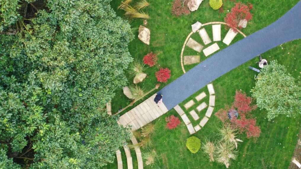 曾经的荒地经过“蝶变”,成为宋代美学古典园林式“口袋公园”;单一的健身步道经过提升,成为五颜六色的绣球花海。