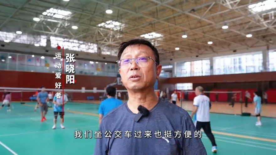 运动爱好者 张晓阳:我们坐公交车过来也挺方便的,每天这个时间安排也很恰当。因为12:00以前都是免费的,居住的小区附近都有几个公共场馆。特别是早上这个时间段,随时到哪个场馆都挺方便,非常好,幸福感非常满。
