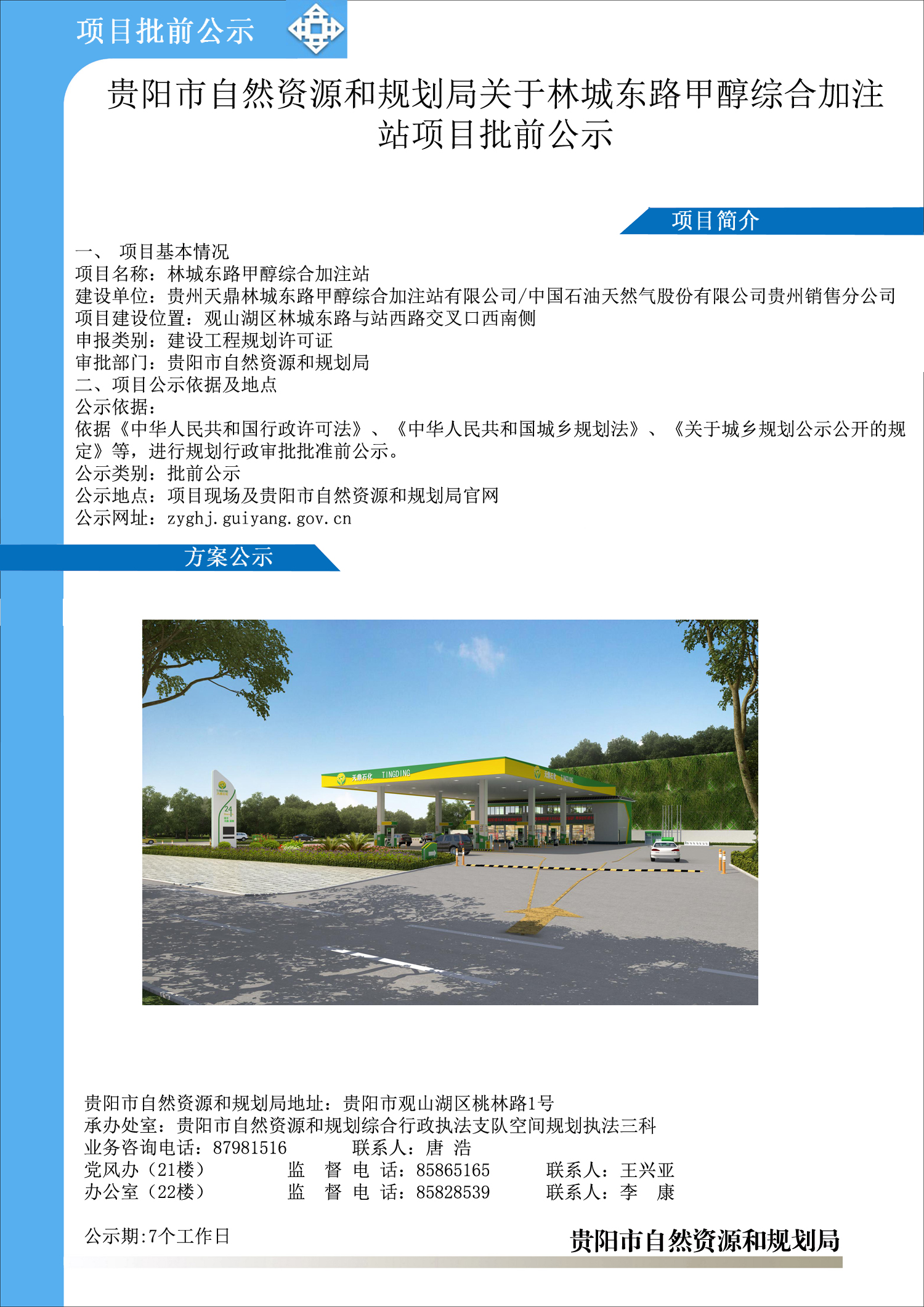 贵阳市自然资源和规划局关于林城东路甲醇综合加注站项目批前公示详见附件: