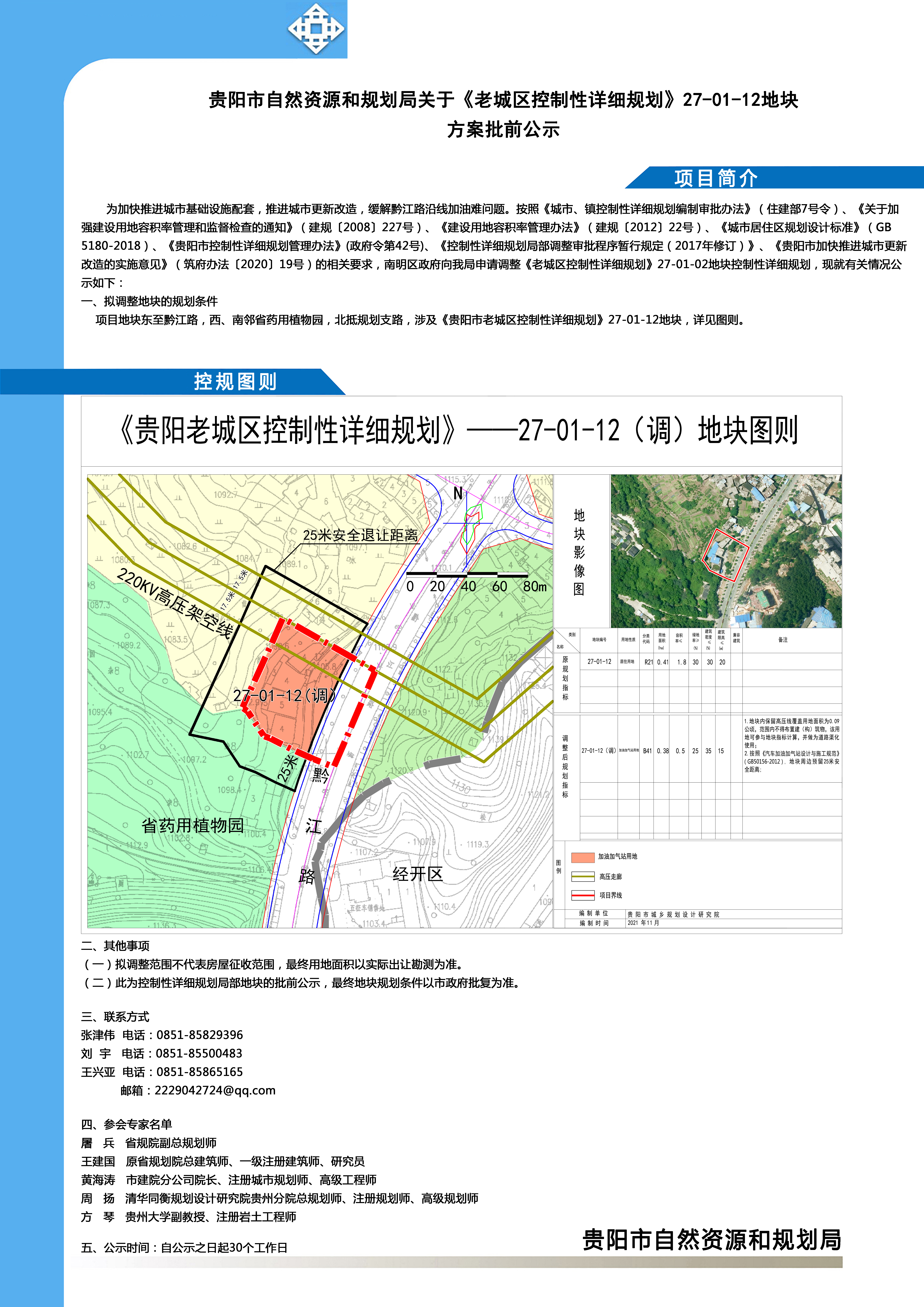 贵阳市自然资源和规划局关于《老城区控制性详细规划》27-01-12地块方案批前公示