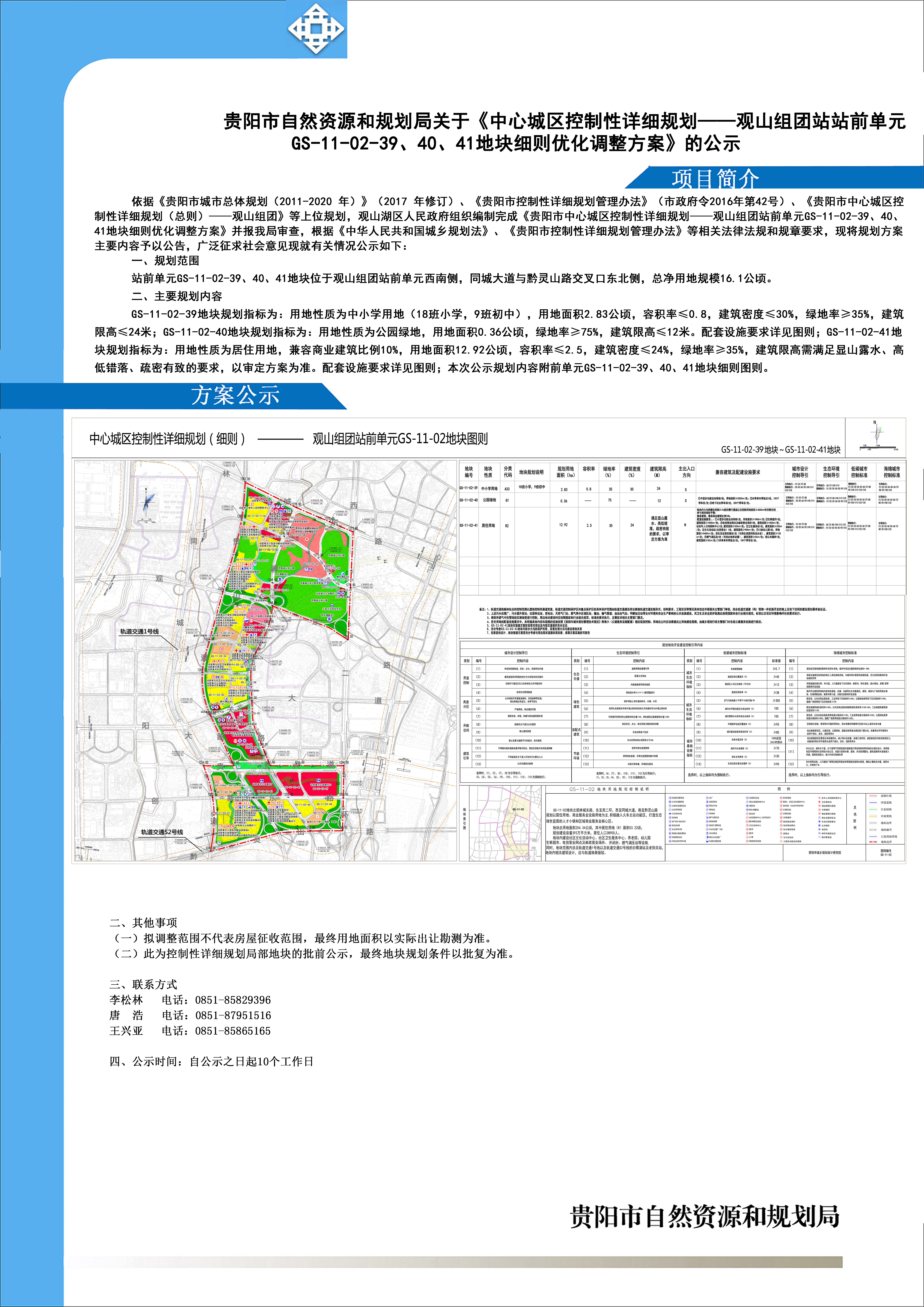贵阳市自然资源和规划局关于《贵阳市中心城区控制性详细规划——观山组团》站前单元GS-11-02-39、40、41地块细则优化调整方案的公示.docx