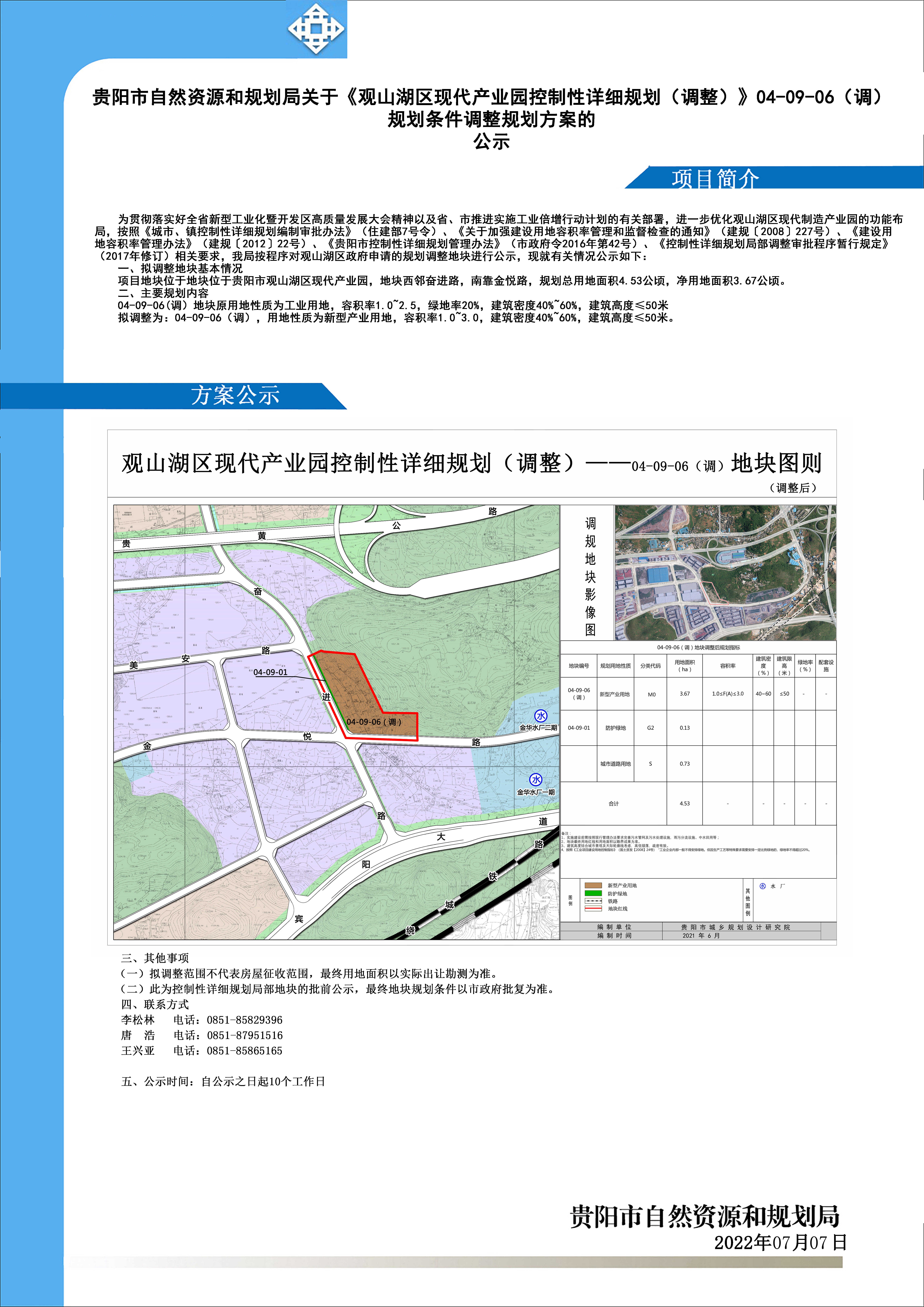贵阳市自然资源和规划局关于《观山湖区现代产业园控制性详细规划》04-09-06地块规划调整方案的公示.docx