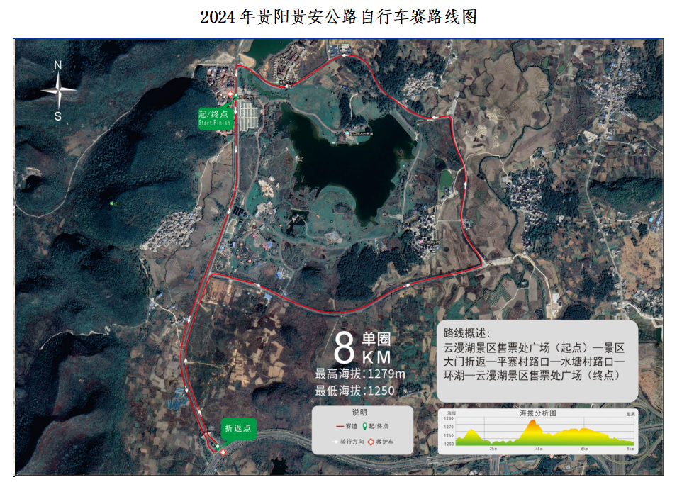 自行车赛路线:云漫湖景区售票处广场(起点)一景区大门折返一平寨村路口一水塘村路口一环湖一云漫湖景区售票处广场(终点),单圈8公里。