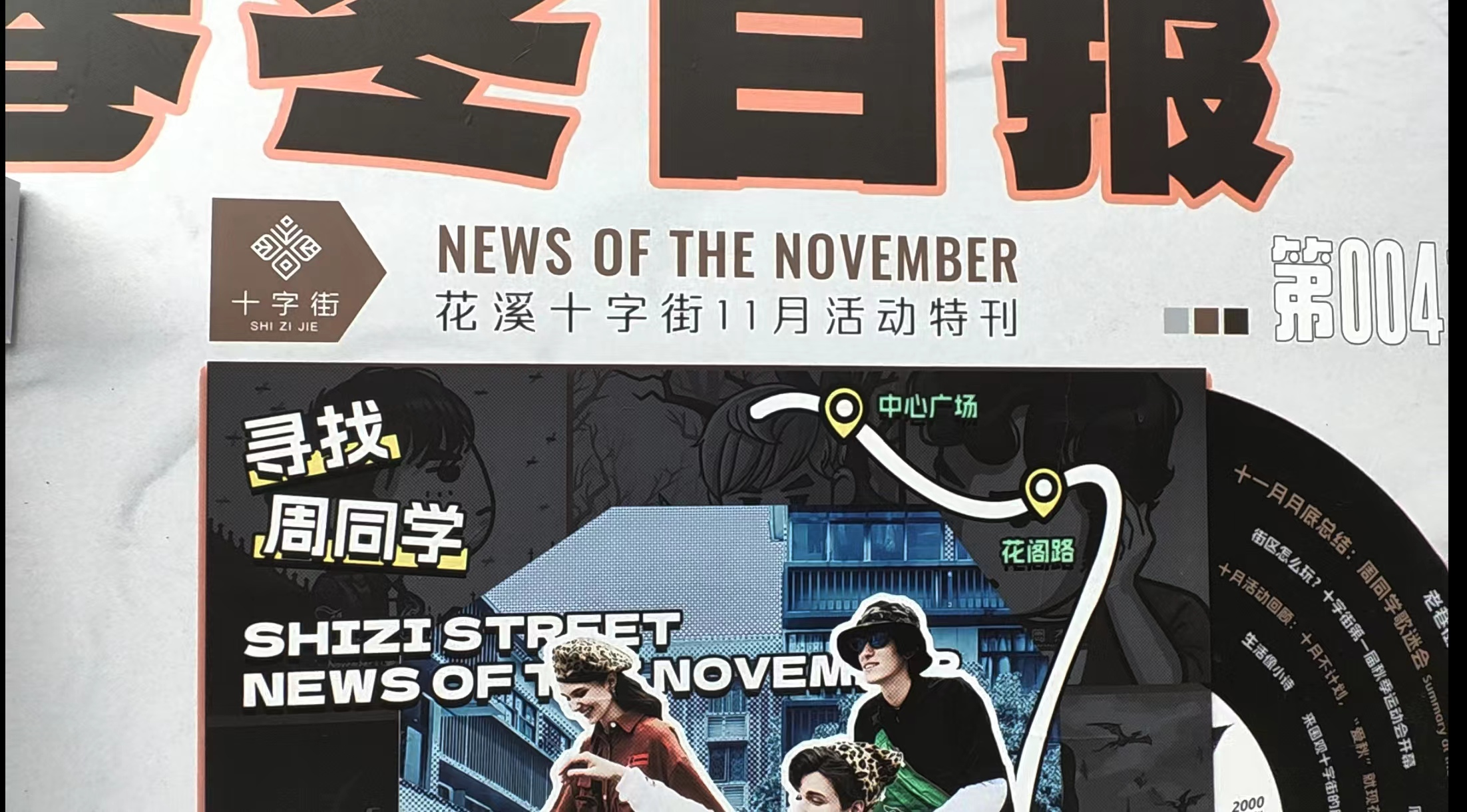 一“报”在手,玩转十字街!进入11月,天气渐凉,花溪区十字街发布11月活动特刊,“十字街头老巷冬日报”出现在各个活动“报亭”,为游客介绍十字街好吃又好玩的亮点,秋冬精彩享不停!