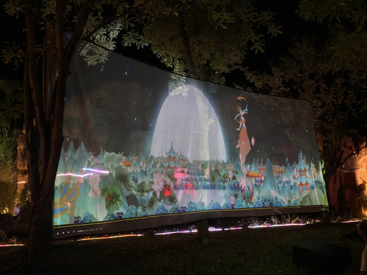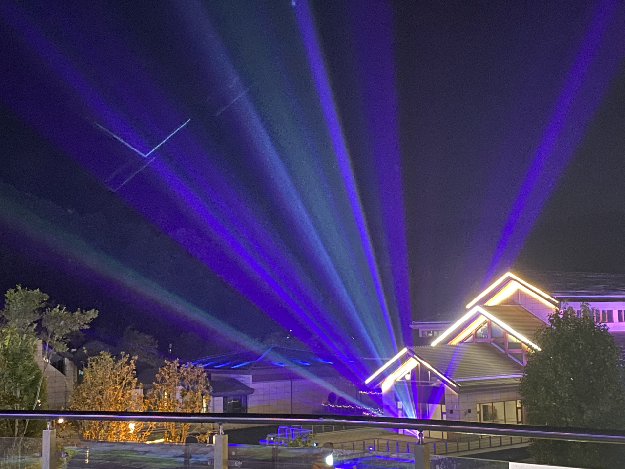 在南山天沐温泉室外温泉区,一场古典美学与现代科技相结合的“彩云追月”光影盛宴让景区氛围感拉满。全彩激光灯在温泉的水雾的作用下,呈现浪漫北极光效果;半山叠泉地面投射海浪、花朵、鱼、螃蟹等元素,为游客增加夜游互动体验乐趣;儿童戏水区森林秘境光影童趣无限;感应花朵、网红互动钢琴、阿凡达潘多拉星球科幻梦幻场景、七彩水雾门不断解锁光影魅力,让游客感受到浓厚的节日气息。