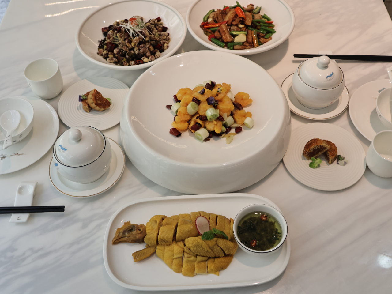 南山天沐温泉餐厅特别推出花好月圆、中秋团圆美食套餐,唯美的菜名吸引许多游客前去体验,邂逅中秋美食奇遇,每一道菜都似开盲盒般的惊喜。