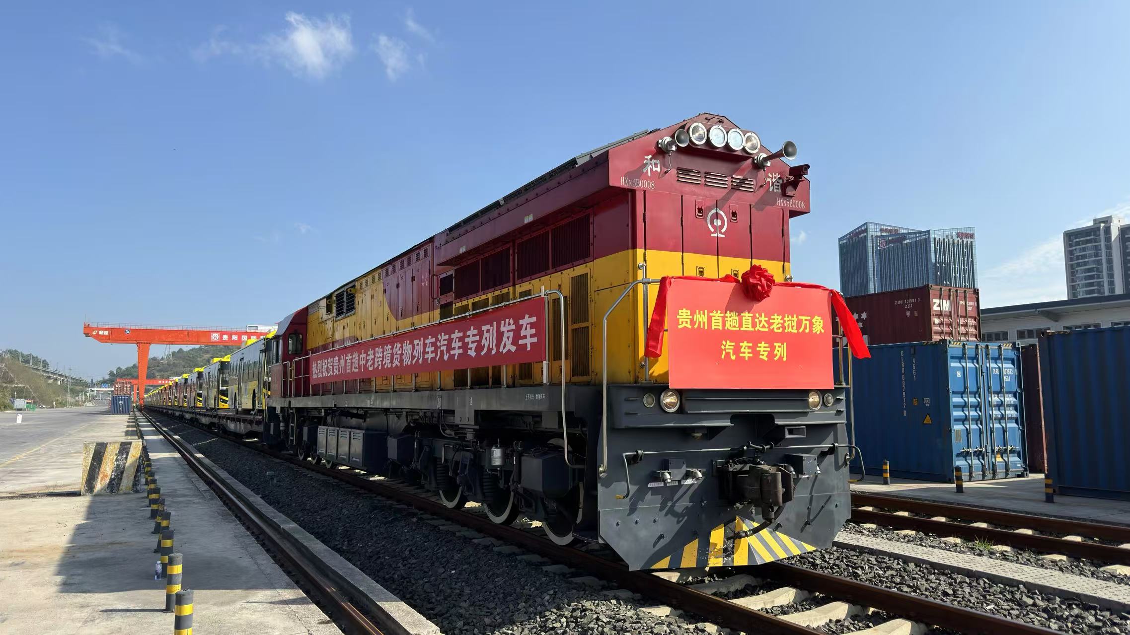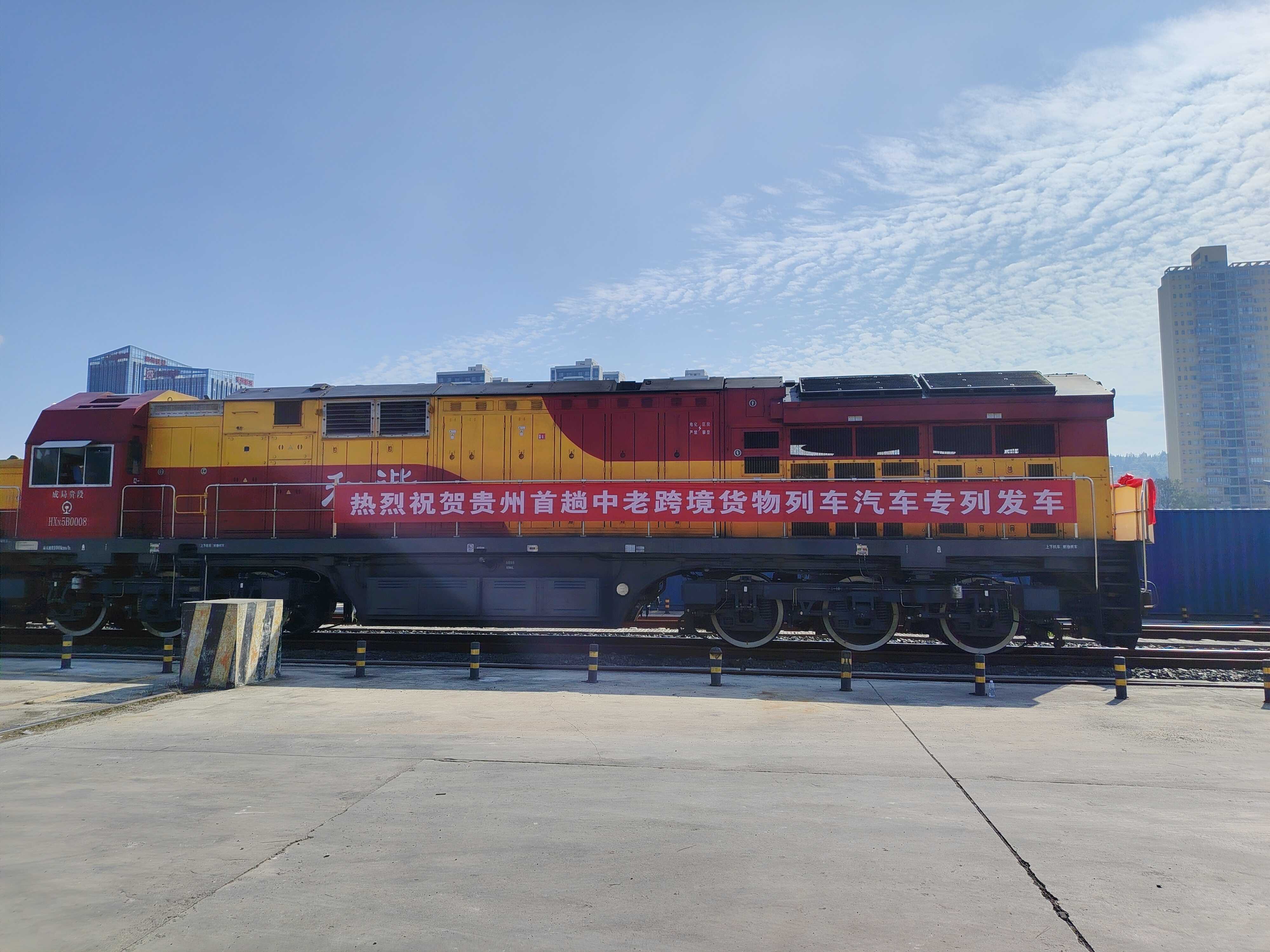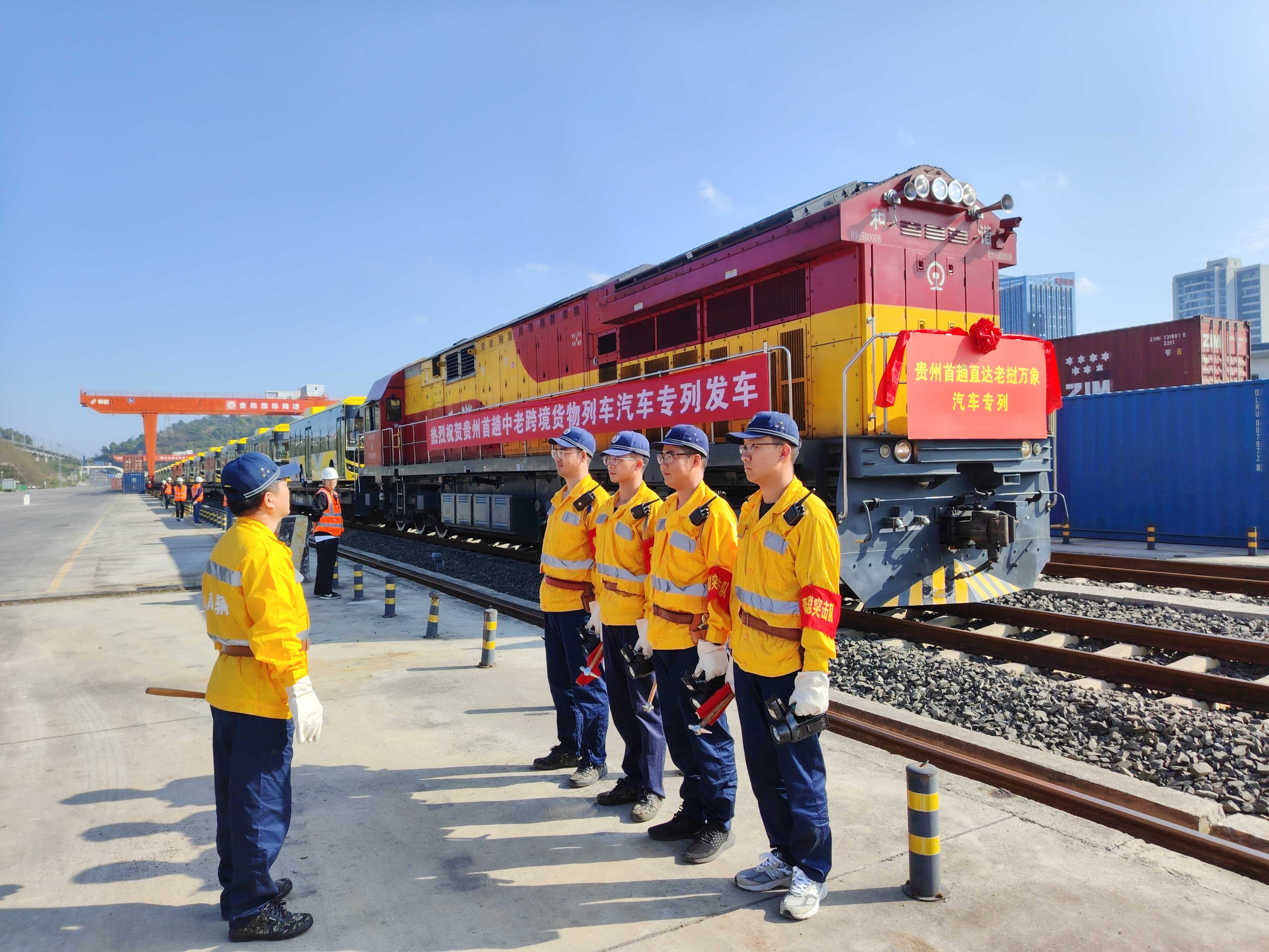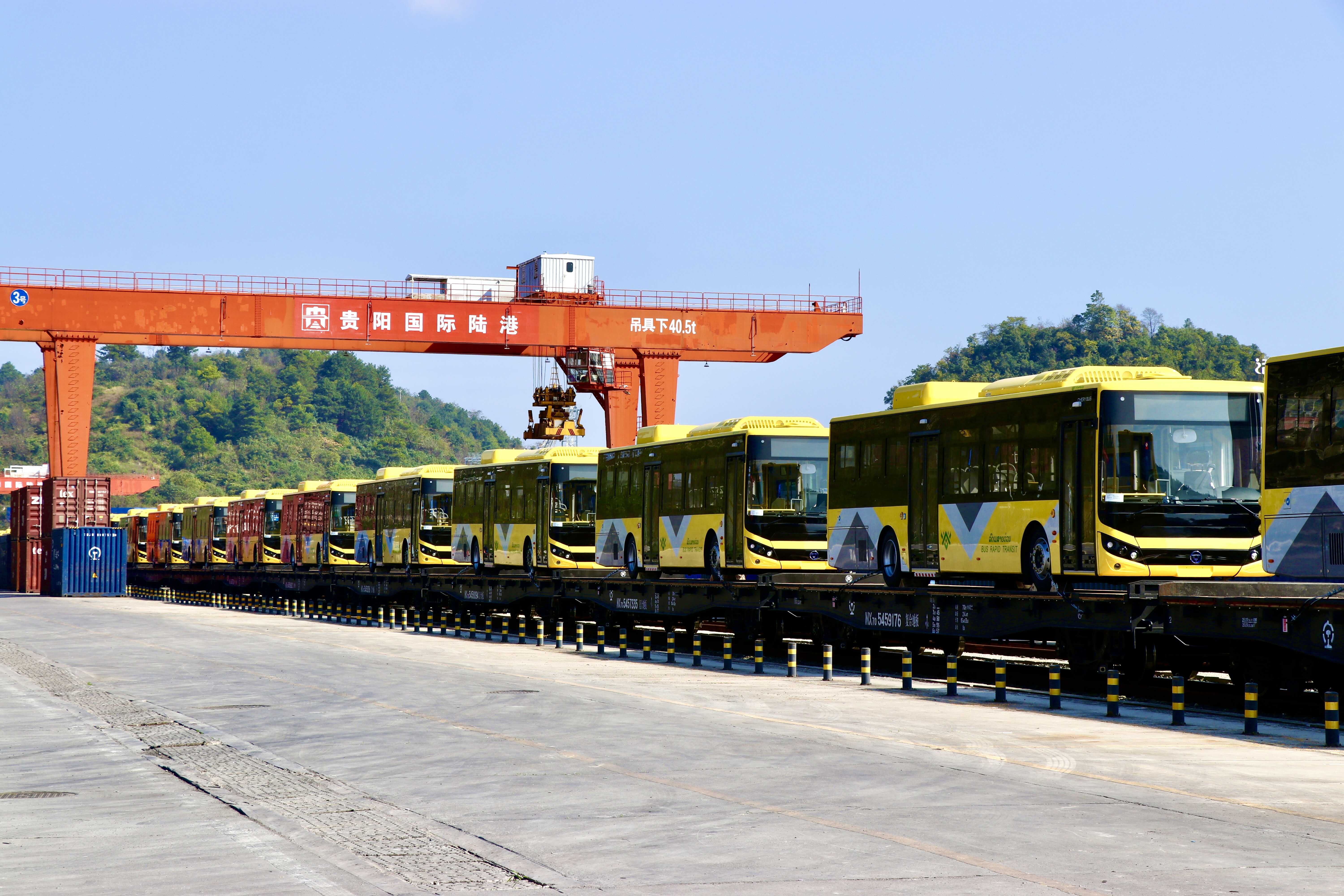 贵州首趟中老跨境货物列车汽车专列发车 出口“贵州造”新能源客车至老挝万象