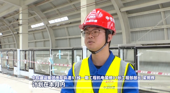 中铁建设集团贵阳轨道S1线一期工程机电装修01标工程部部长 梁朔辉:计划在本月内全面铺开整个标段所有车站的公共区装修,目前我们整体进度达到了65%左右。
