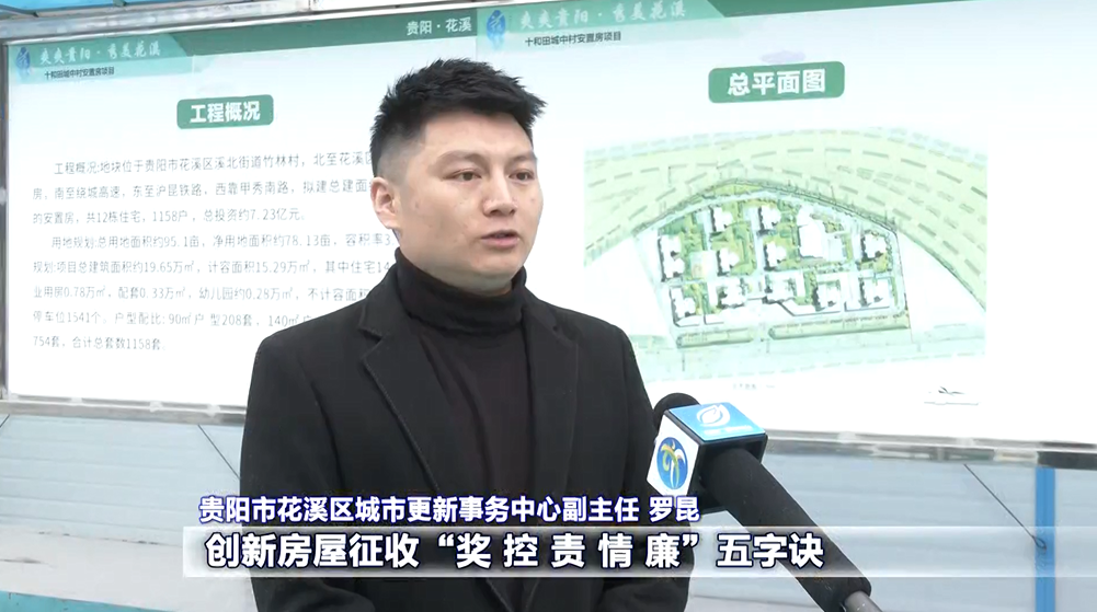贵阳市花溪区城市更新事务中心副主任 罗昆:聚焦花溪区城中村改造项目2024年的目标,创新房屋征收“奖、控、责、情、廉”五字诀,以“奖”促签,以“控”促签,以“责”促迁,以“情”促签,以“廉”促迁。截至目前,我们的安置房开工率已达100%,房屋征收签约率达到65%,预计12月20日左右完成全年的目标任务。