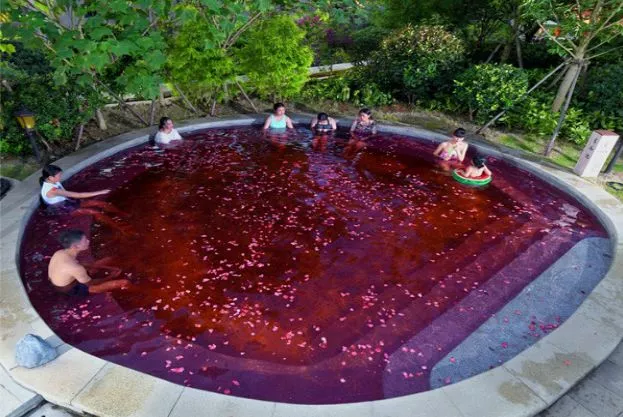 息烽温泉有7个泡汤区,共29个特色各异的温泉池,温泉池常年水温在 53-56℃之间。爱保养的女生可以选择水质细滑的牛奶池、香气清幽的花瓣池滋养肌肤;气虚体弱的老年人、有肌肉酸痛、腰肌劳损之类症状的上班族可以选择药味浓浓的姜池泡一泡祛祛寒气放松肌肉。