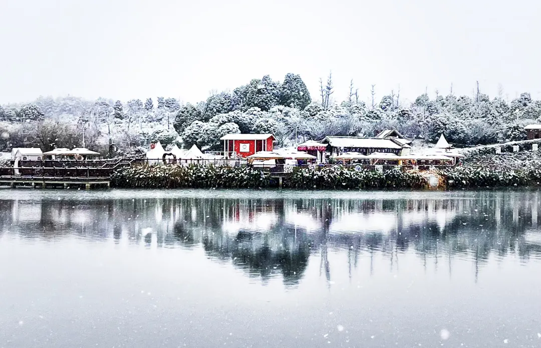 山水之间,园林温泉温泉·雪景·美食·康养,见惯桃源河夏日漂流的热情似火,不妨来体验一下冬日山间的清幽,跟随水流细品味这傲人雪景。