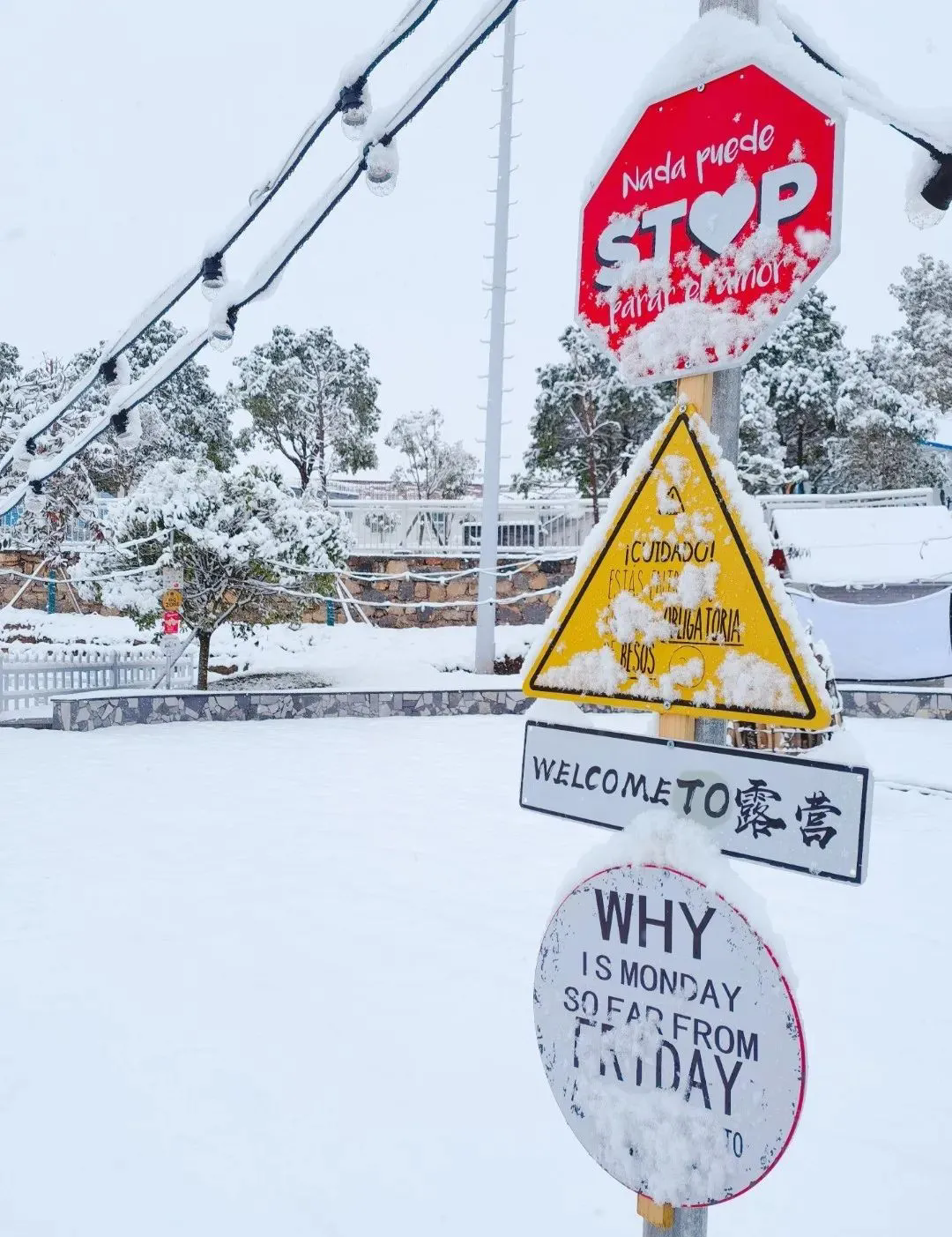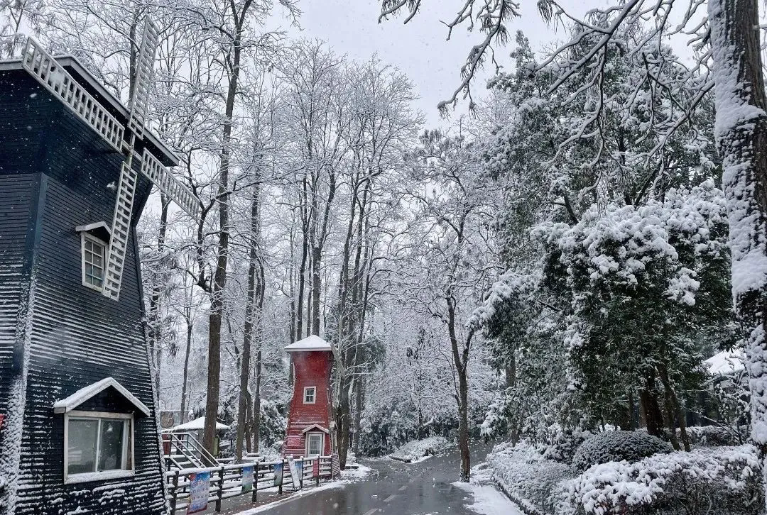 森林里面有南瓜屋、海盗船、彩色蘑菇......他们都沾上了雪花,就像撒上了一层薄薄的甜甜的糖霜,这里才是梦幻的乐园。
