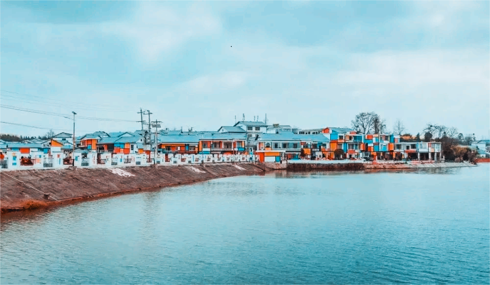 进入村庄,就像是走入一部童话般梦幻七彩部落。蓝天白云,五彩斑斓的房屋倒映在水面,周围是草坪和树林,非常适合露营烧烤、拍照打卡,特别小清新,充满着艺术气息。