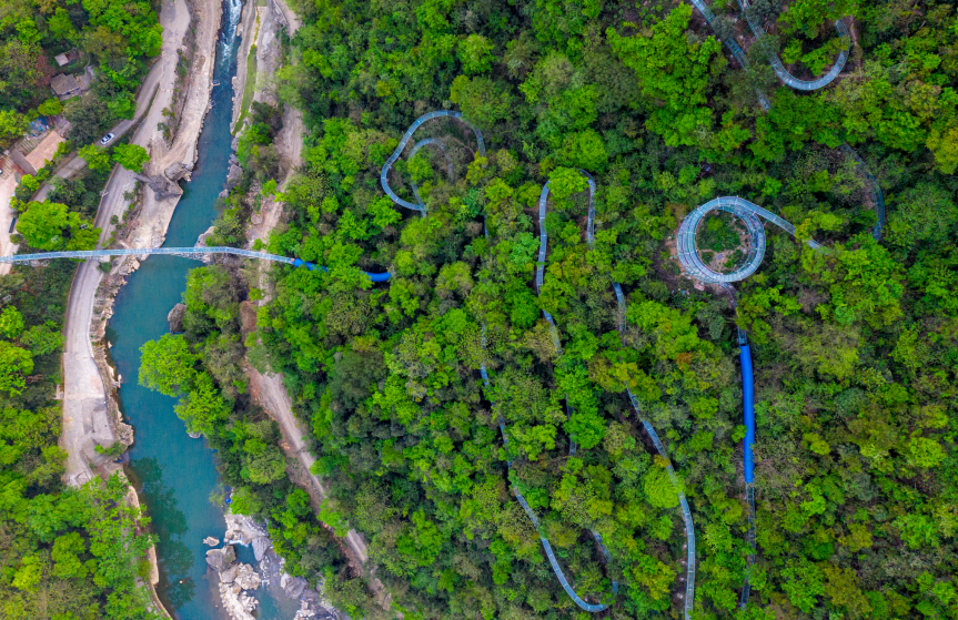 玻璃滑道(空中漂流):滑道沿峡谷岩体顶端蜿蜒而下,全长约3公里,目前为“贵州首条玻璃水滑道”。