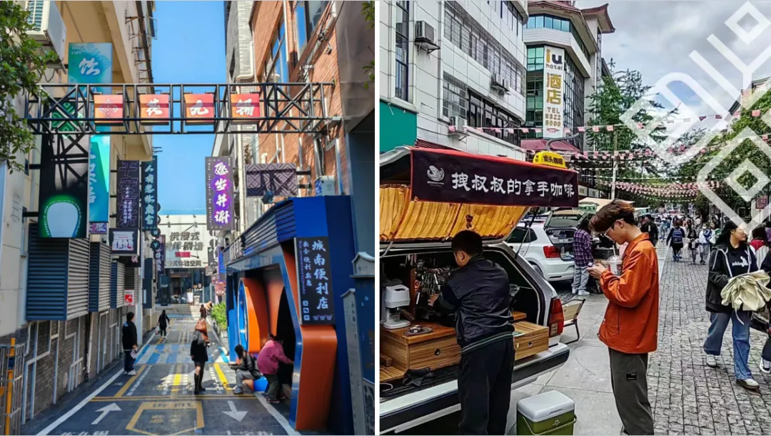 除了花溪牛肉粉传统美食打卡,十字街还有都市青年的休闲派对,白天,这里是水岸小众咖啡的聚集地,辣味咖啡、折耳根奶茶带你领略新潮的贵州味,夜幕降临,这里是各色中式古风与精酿啤酒碰撞的火花,城市露营地、水岸集市、猫的天空书咖……,传统美食被这里的新新人类玩出了花,没有吃不到,只有想不到,味蕾与激情都在这里得到尽情的释放。