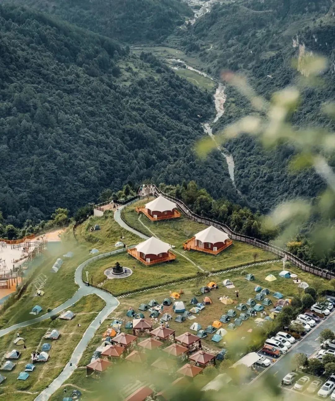 营地以“红岩栖居,极限峡谷”为主题,以“精致的野,安全的野”为特色,有汽车营地、溪畔营地、帐篷酒店、野餐营地、装备集市等功能分区。