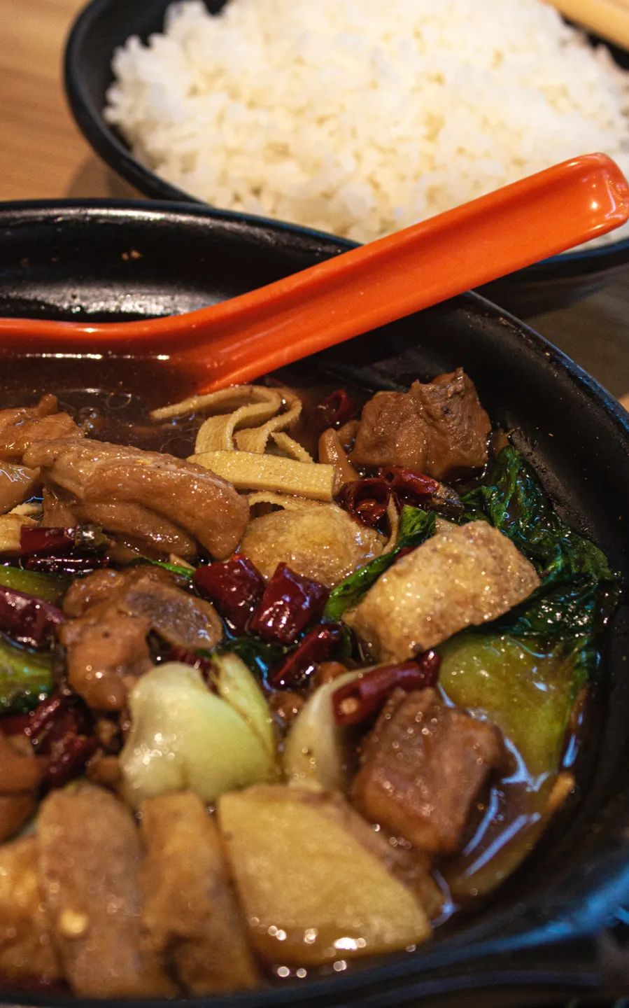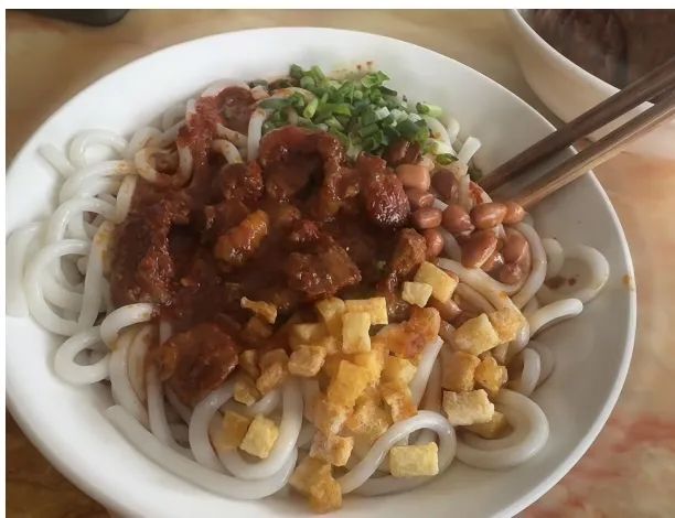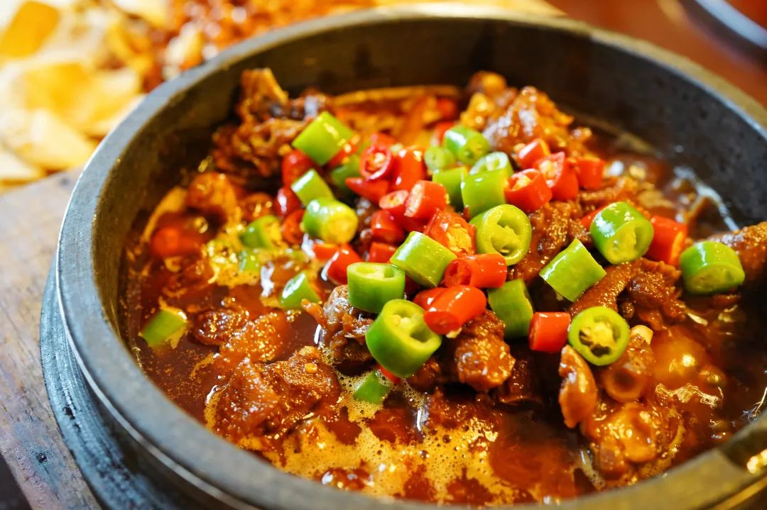 要问有什么美食?干锅牛肉是有名的招牌菜,每逢周末、节假日都吸引着无数食客慕名而来。干锅牛肉的食材选用本地黄牛肉,炒制过程中辅以芹菜和萝卜,制成后整锅香气四溢。马场辣鸡粉有一种特别的佐料,像脆哨一样一粒一粒的小土豆,轻轻咬一口就爆开,又脆又响,嗦上一口可以治愈所有疲惫。