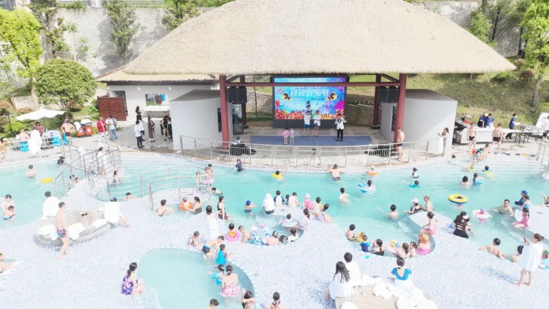 在三合村田坝水上乐园,干净整洁的乡村特色民宿,农家小院映入眼帘冲浪、丛林探险、竞速卡丁车等十多种游玩项目,让人目不暇接。