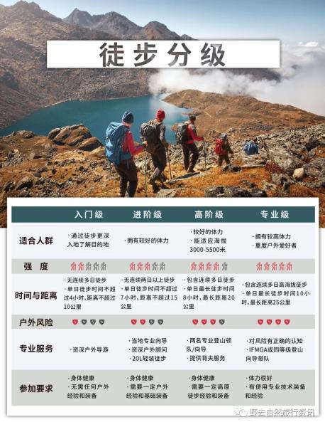 2)可选装备:登山杖、护膝、头灯或手电、相机、防晒霜、替换衣物等