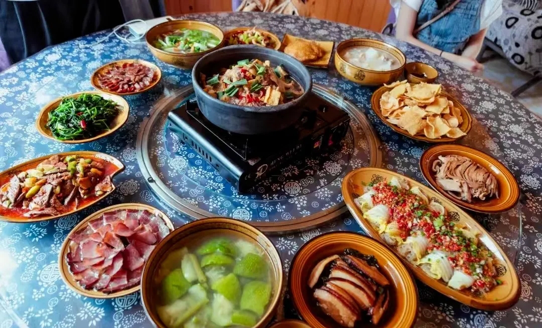王岗村——庖汤第一村,这里的庖汤宴远近闻名,三盘四碟八大碗,在热气腾腾中,散发着生活的热烈与欢畅。庖汤宴就是“杀猪饭”,新鲜的土猪肉、粉肠、血旺等食材,经过精心烹制,化作舌尖上的美味,清汤醇厚鲜美,辣味酣畅淋漓。每道菜都有独特寓意,满含对生活的美好期许。