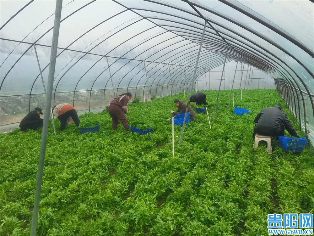 1月20日,记者走进贵阳市观山湖区朱昌镇茶饭村,蔬菜基地的大棚里成片的小白菜、芥菜、茼蒿菜等蔬菜郁郁葱葱、长势喜人,村民们正忙着采收。