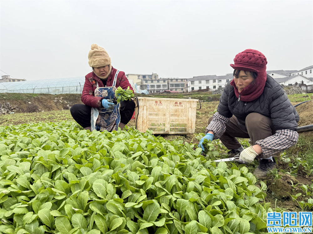 随着春节临近,蔬菜市场迎来消费高峰。为满足群众消费需求,贵阳贵安各蔬菜种植基地正加紧采摘新鲜蔬菜,全力以赴确保春节前后居民 “菜篮子” 的稳定供应。