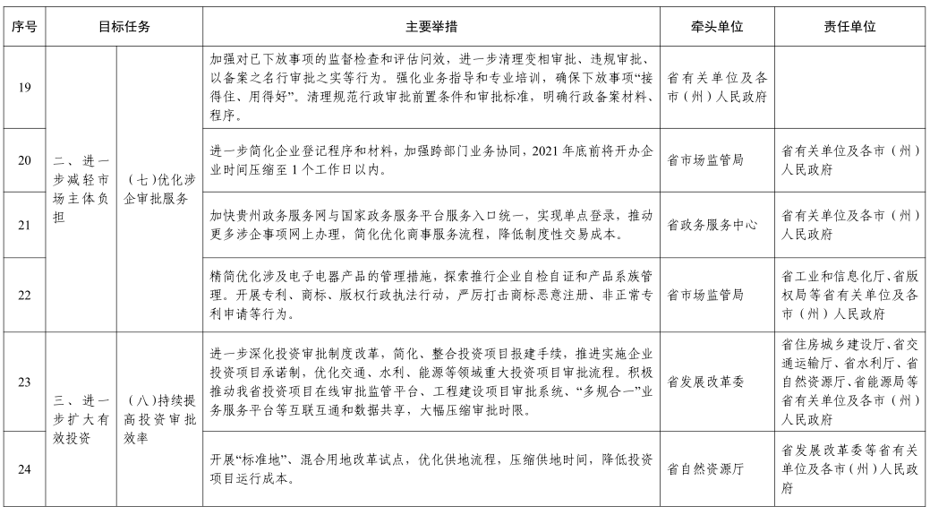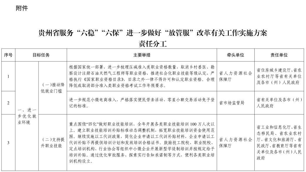 附件:贵州省服务“六稳”“六保”进一步做好“放管服”改革有关工作实施方案责任分工