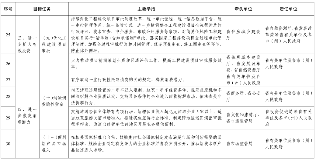 (八)持续提高投资审批效率。进一步深化投资审批制度改革,简化、整合投资项目报建手续,推进实施企业投资项目承诺制,优化交通、水利、能源等领域重大投资项目审批流程。积极推动我省投资项目在线审批监管平台、工程建设项目审批系统、“多规合一”业务服务平台等互联互通和数据共享,大幅压缩审批时限。开展“标准地”、混合用地改革试点,优化供地流程,压缩供地时间,降低投资项目运行成本。