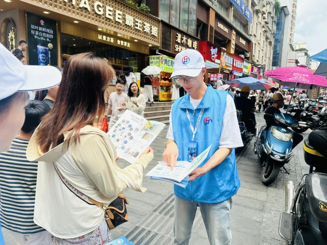 在民生路好吃街、太平路、花果园游客中心,“小青爽”们向来往游客发放贵阳旅游攻略宣传手册,内含景点线路、美食地图及交通信息,并现场答疑,助力八方来客畅行爽爽贵阳。