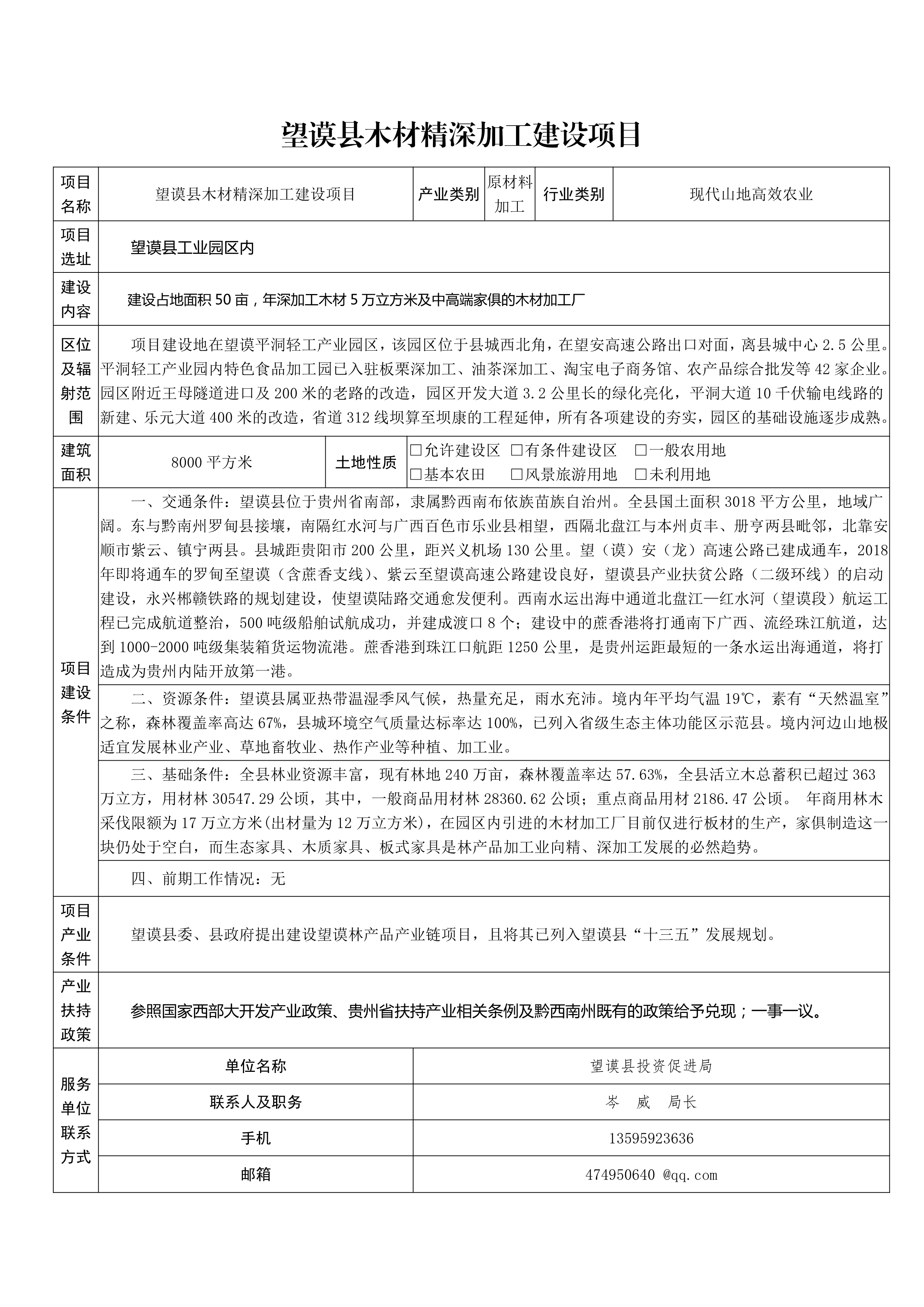 定点扶贫帮扶地区项目推荐:黔南州望谟县2018年精品包装项目木材精深加工精包装项目