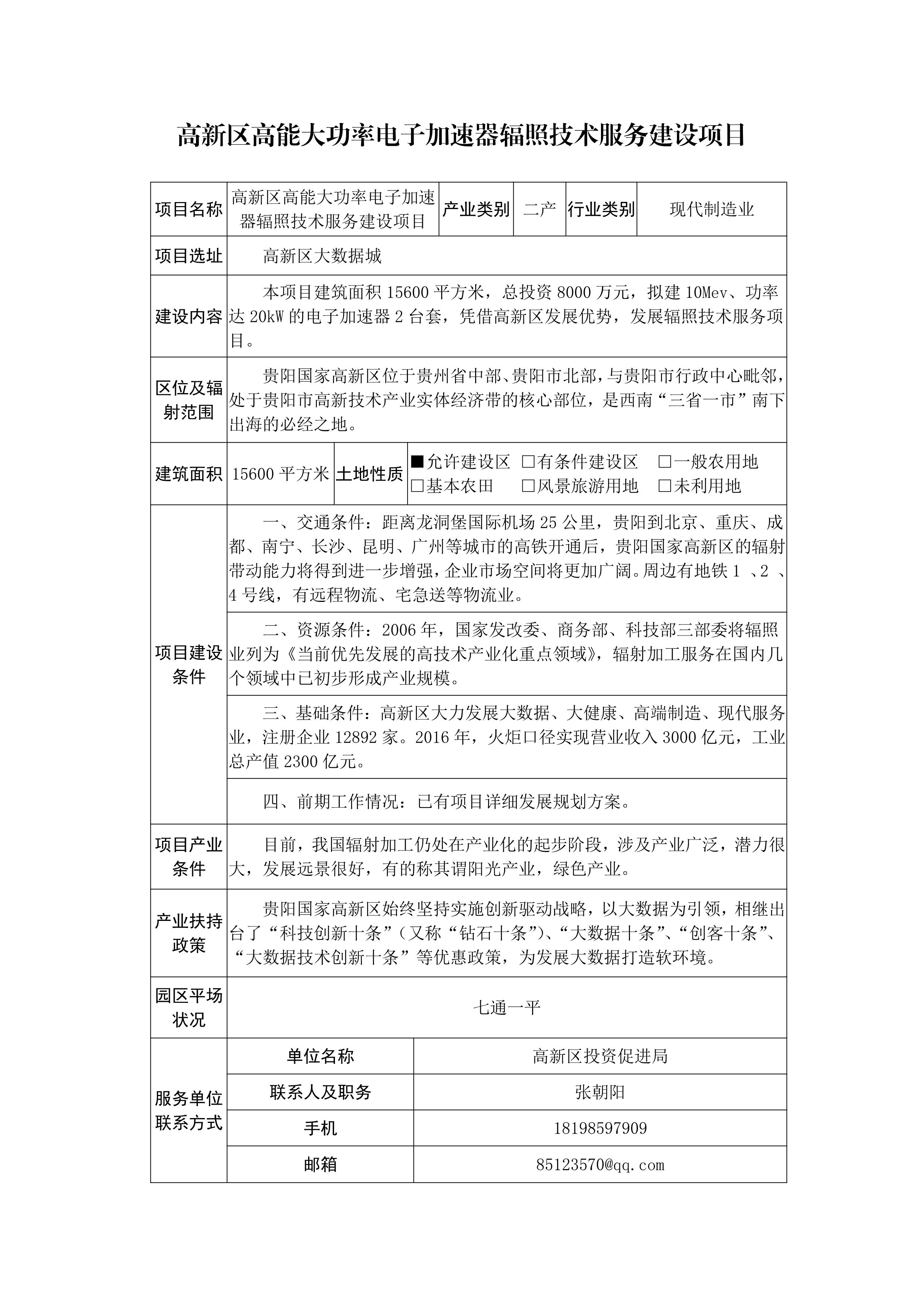 高新区高能大功率电子加速器辐照技术服务建设项目