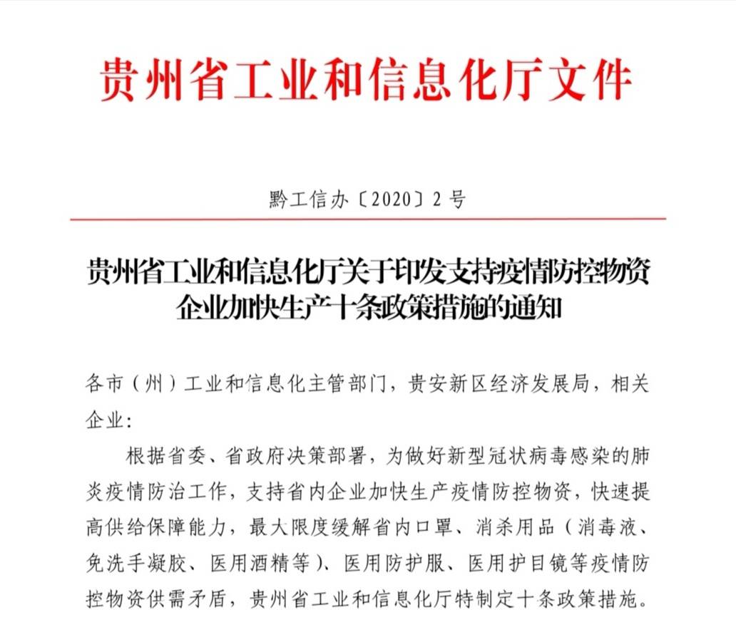 贵州出台支持疫情防控物资企业加快生产十条政策措施