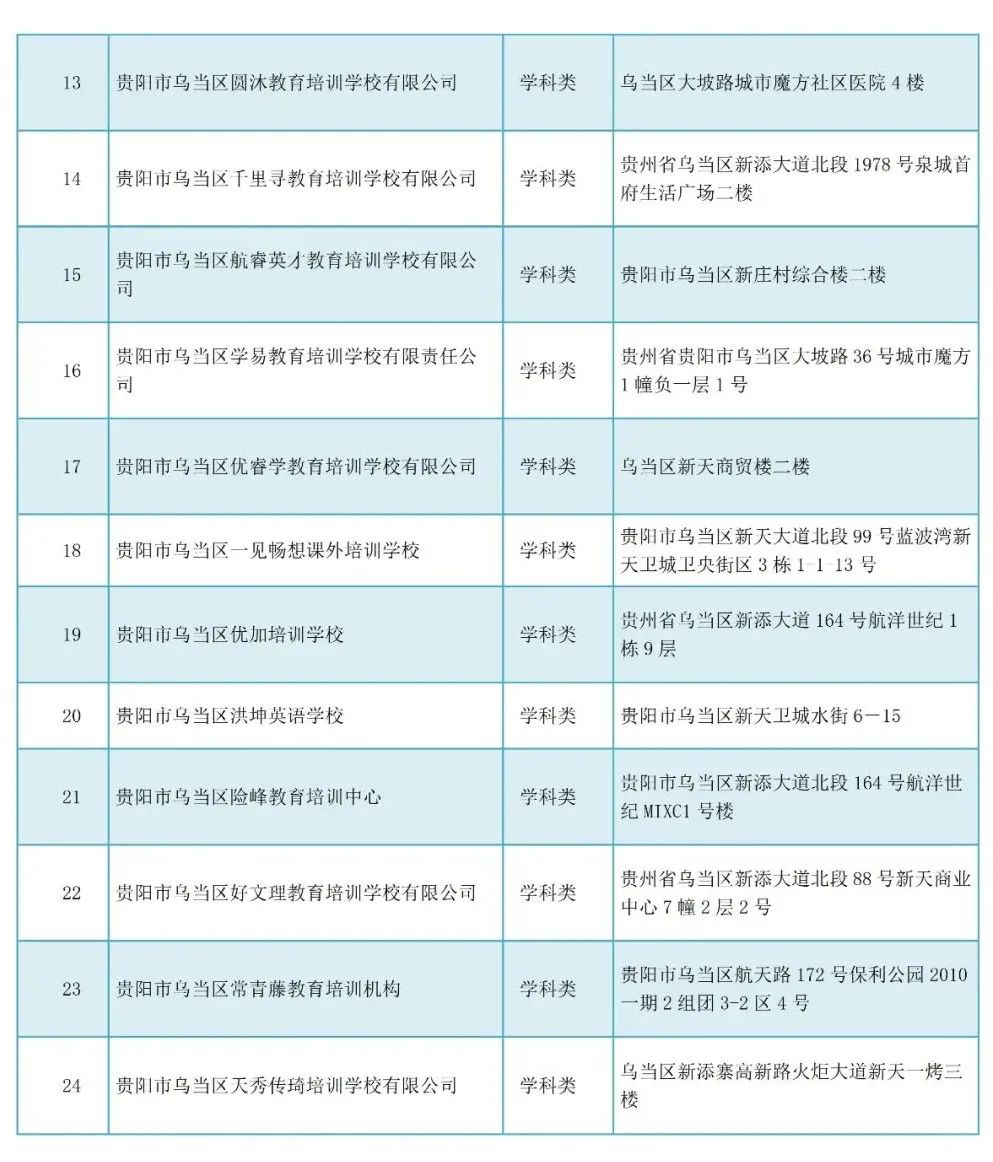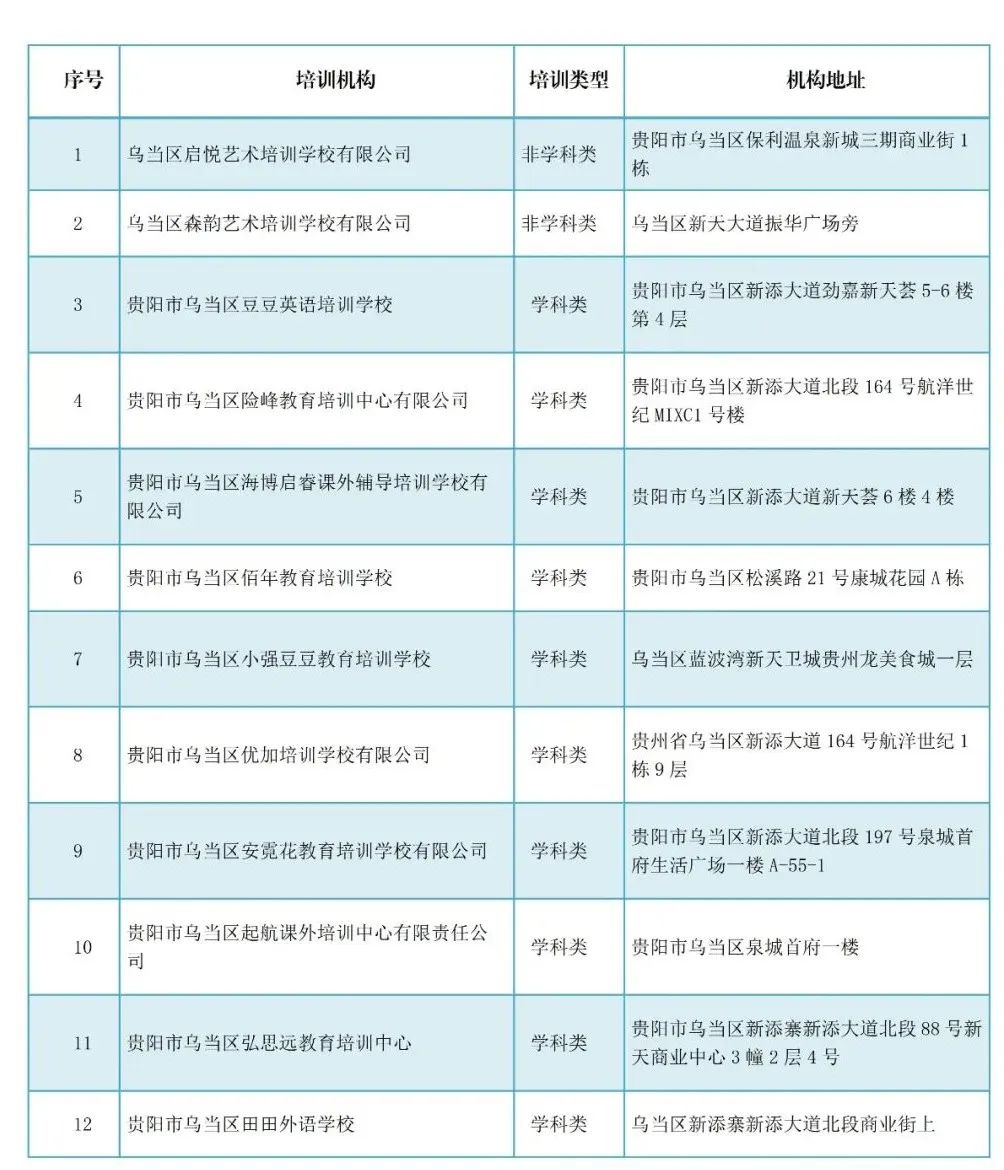 根据《中华人民共和国民办教育促进法》及《中华人民共和国民办教育促进法实施条例》等相关法律法规之规定,乌当区启悦艺术培训学校等24所校外培训机构主动申请注销其《中华人民共和国民办学校办学许可证》,经批准同意,予以注销。