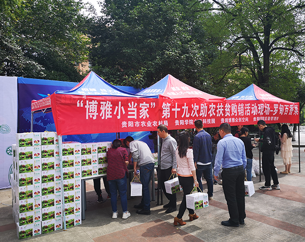 2019年9月22日,“博雅小当家”第十九次助农扶贫购销活动现场—罗甸百香果在贵阳学院图书馆广场进行,此次活动由贵阳市农业农村局、贵阳学院大学科技园、贵阳学院食品与制药工程学院、贵阳雅博众创空间、贵阳学院后勤管理处共同组织开展。