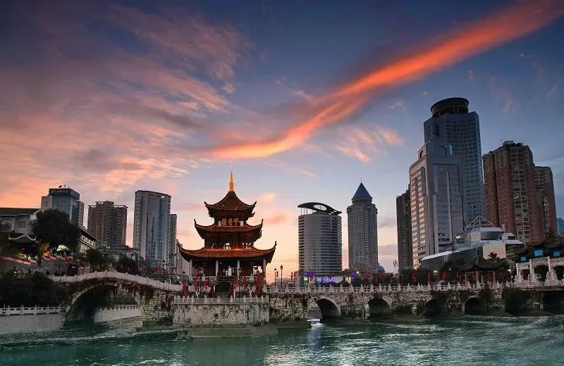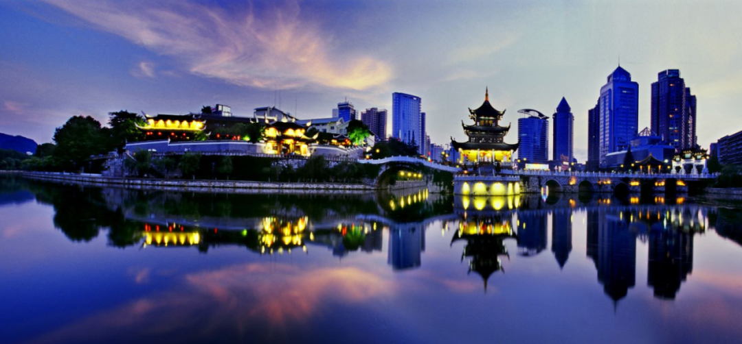 「筑城广场」位于南明区遵义路,也是贵阳的标志性建筑之一,广场呈半岛型依偎在风景秀丽的南明河畔,就像是一个大型的户外会场。