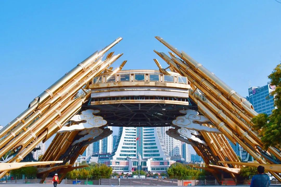 广场上的主体建筑“筑韵”,由8个巨大的芦笙组成,造型为竹子,代表了贵阳的竹文化,位于贵阳的城市客厅中,也是一种贵阳文化的体现。