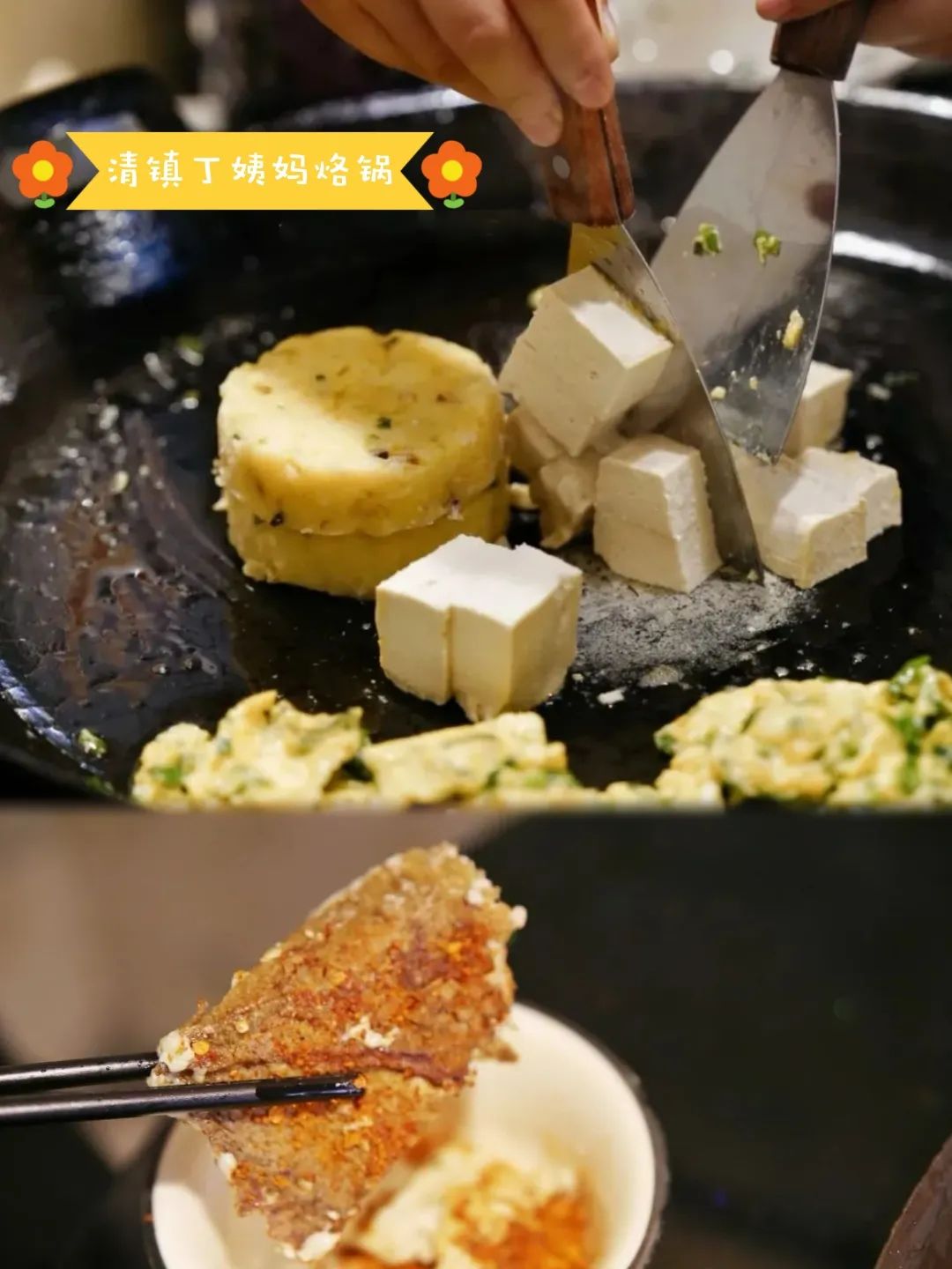 清镇丁姨妈烙锅是创始于八十年代的老字号,软哨洋芋粑和臭豆腐进店必点!特点是外脆里嫩,融合了辣椒面的香辣,美味在口腔中瞬间迸发,太赞了!