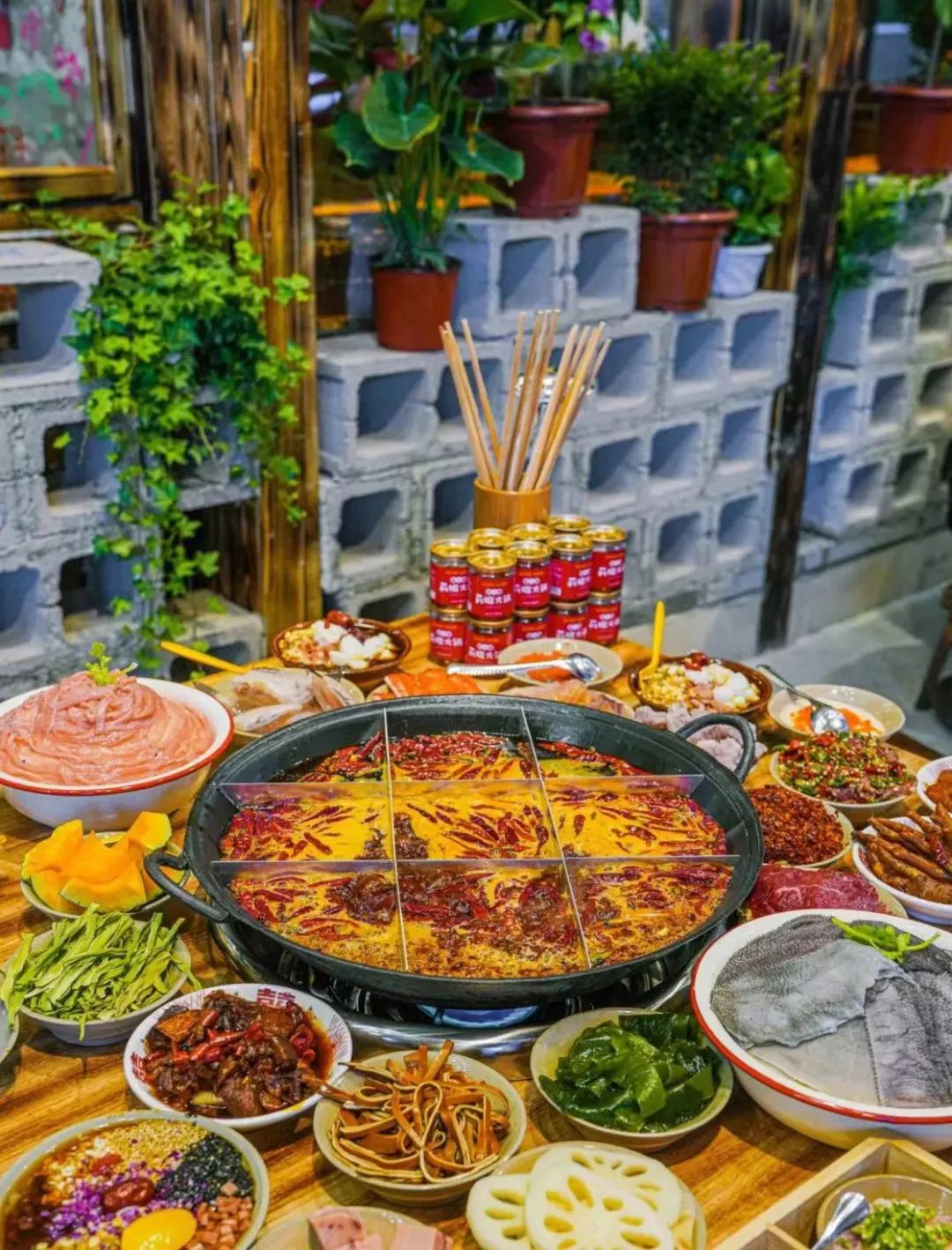 夹上毛肚、鲜肉、鸭肠,在冒着泡的红油汤锅里七上八下涮到刚刚熟,在香油里裹上一圈入口,香辣直击灵魂。