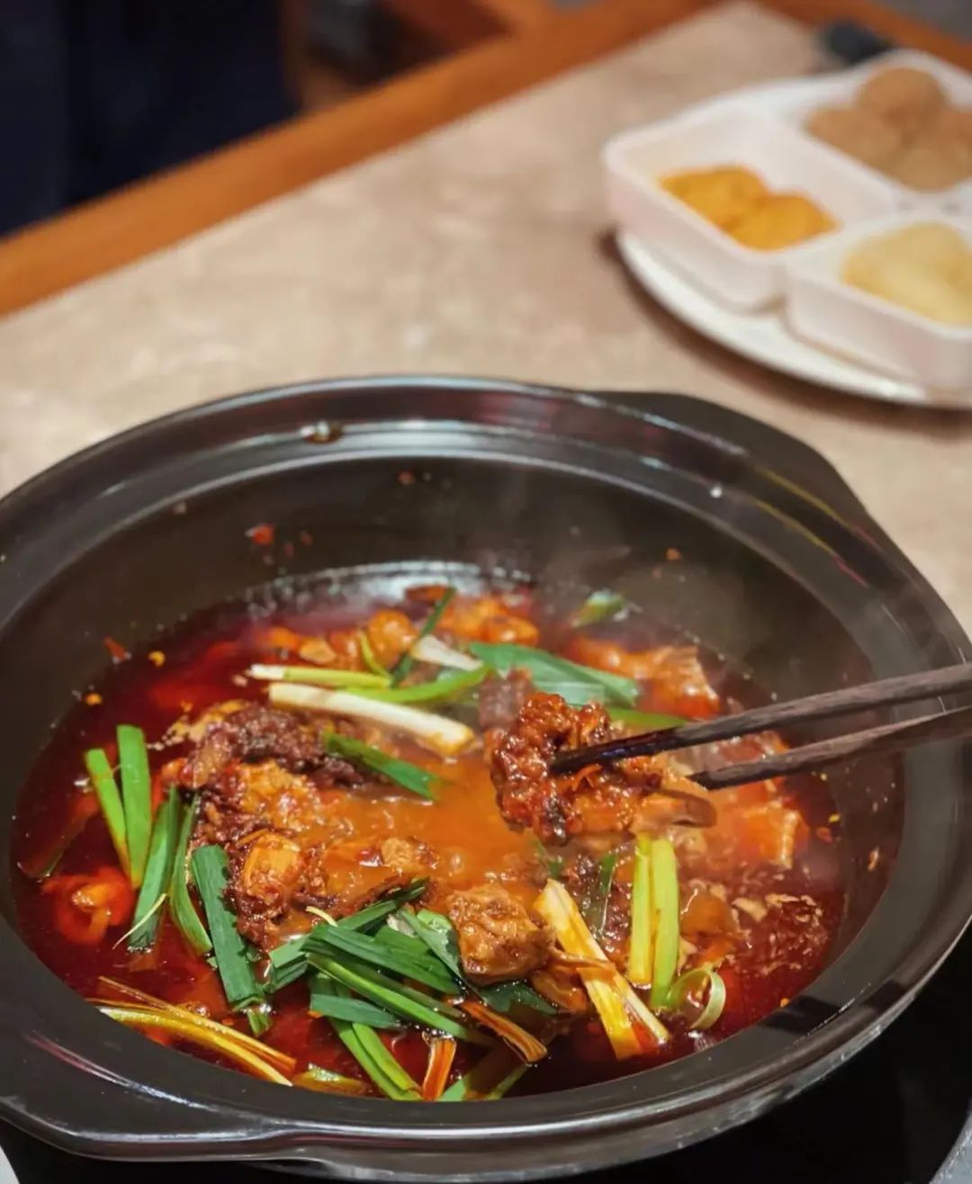 除了单吃以外,还可以加入适量水和盐,使其成为一道冬天美味——辣子鸡火锅。