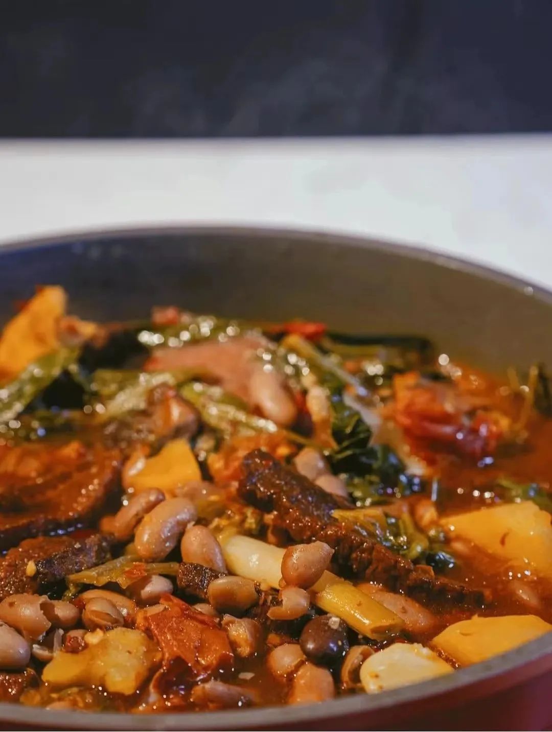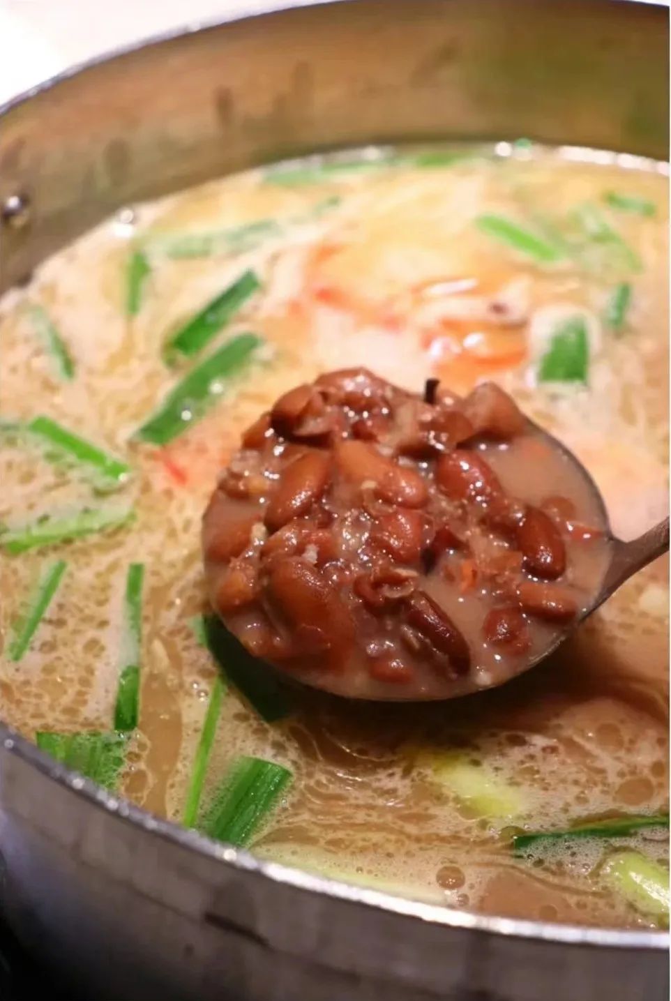 细软的豆沙包裹着排骨汤的浓郁,味道醇厚鲜香,长时间的熬煮,让原本清透的排骨汤变得更加浓稠,如同一锅酱汁,后煮的蔬菜、肉类,会更加丰富汤底的味道,让汤的味道有更多层次,更加鲜香。
