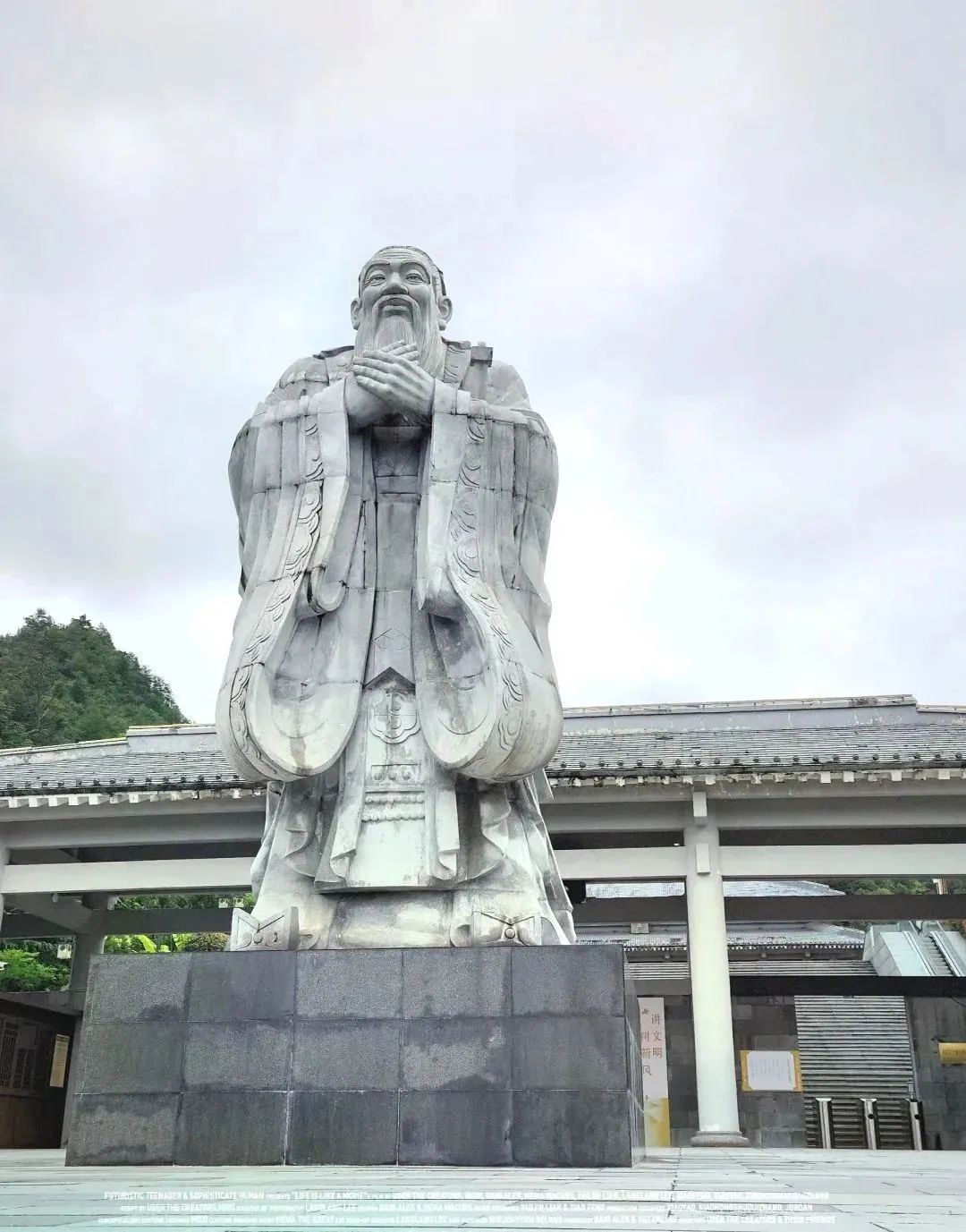 矗立于园区中心的孔子像彰显着圣人的神圣与庄严,目光仿佛穿越千年透露出无尽的睿智与洞见,站在雕像下观赏更添几分神秘感,让人不禁肃然起敬。