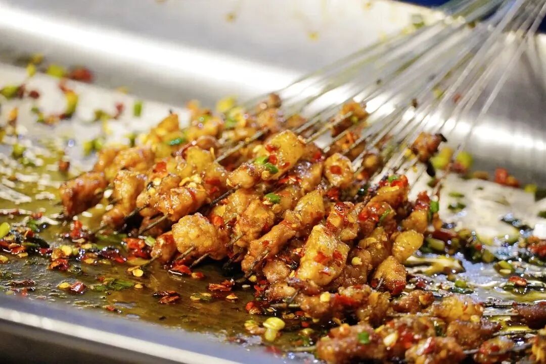 烤肉、丝娃娃、烤鱼、花甲粉、卤猪脚、臭豆腐……各种特色美食琳琅满目,香味扑鼻。市民游客穿梭于各个店铺,体验“爽爽贵阳”的热辣滚烫,感受城市烟火气。