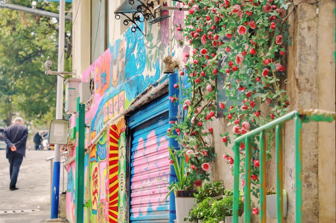 坑洼积水的路面变得平整,杂乱无章的线路得到整治,盏盏崭新的路灯照亮归途,休闲健身的设施出现街角,还有近800平方米的外立墙被赋予艺术创作,刻满岁月痕迹的老式居民楼藏在这些五彩斑斓的涂鸦世界中,是平凡生活中简单又浪漫的日常。